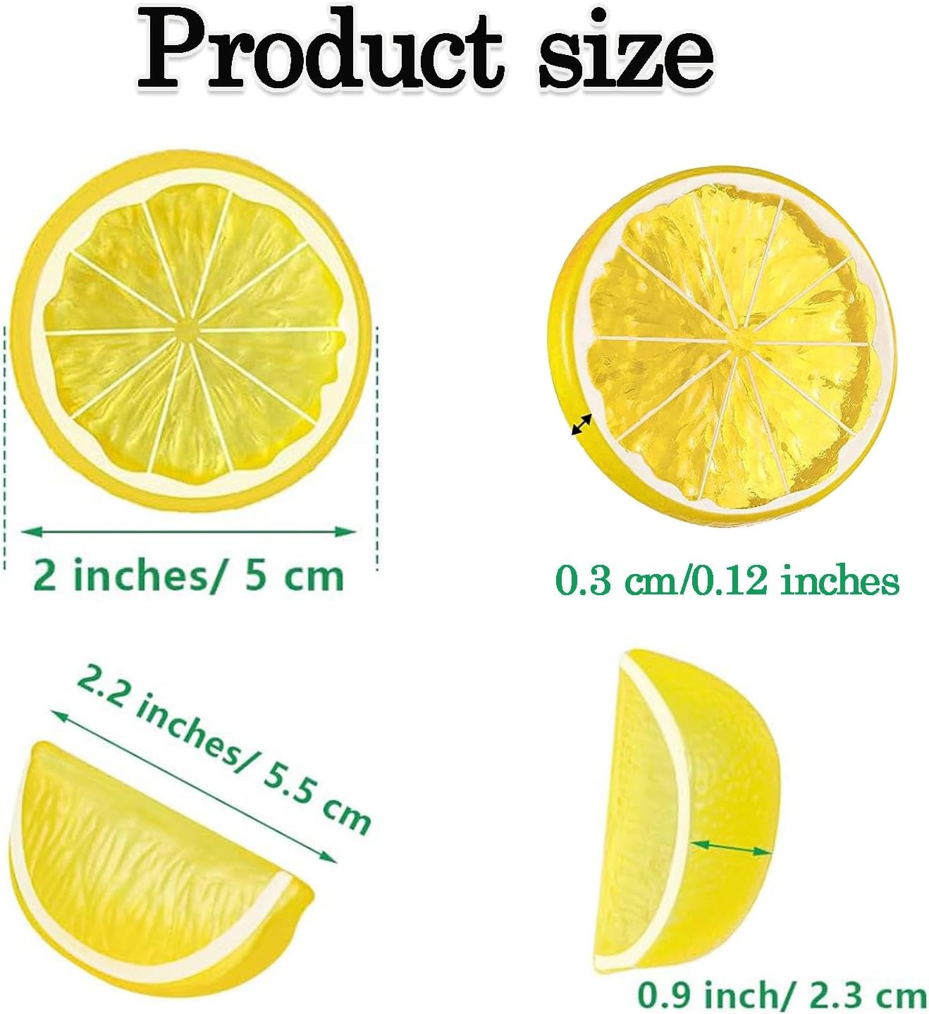 Размер на резенчета лимон: 5 x 5 x 0.3 см / 1.97 x 1.97 x 0.12 инча.