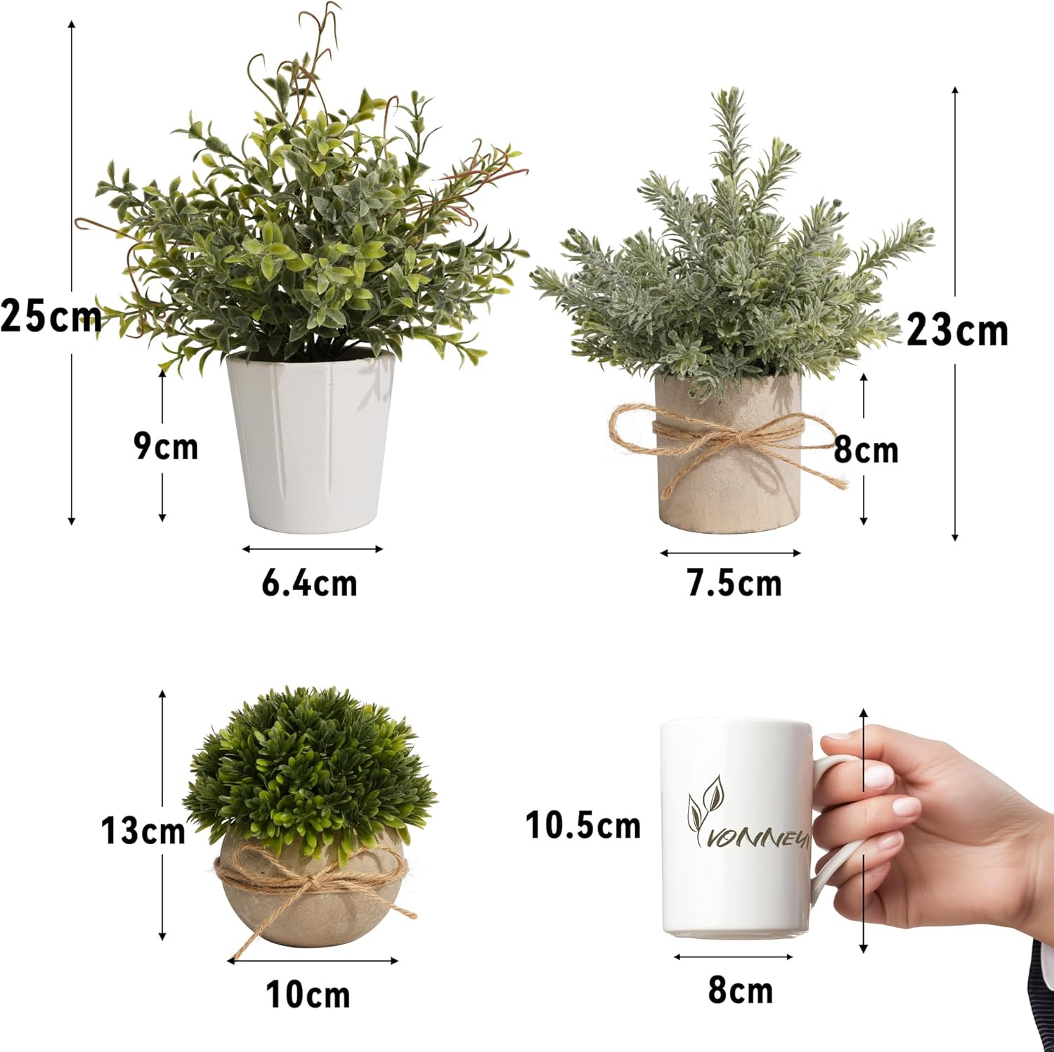 Assorted artificial plants in small grey pots. The lifelike green plants of these artificial shaped woods make them look like they were grown outdoors! With its gorgeous leaves, it is the perfect ornament to add a natural touch to any room. Place it between artificial flower plants for an extra lush, realistic look.