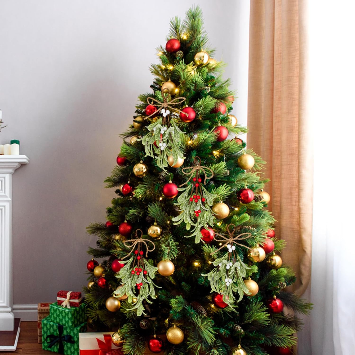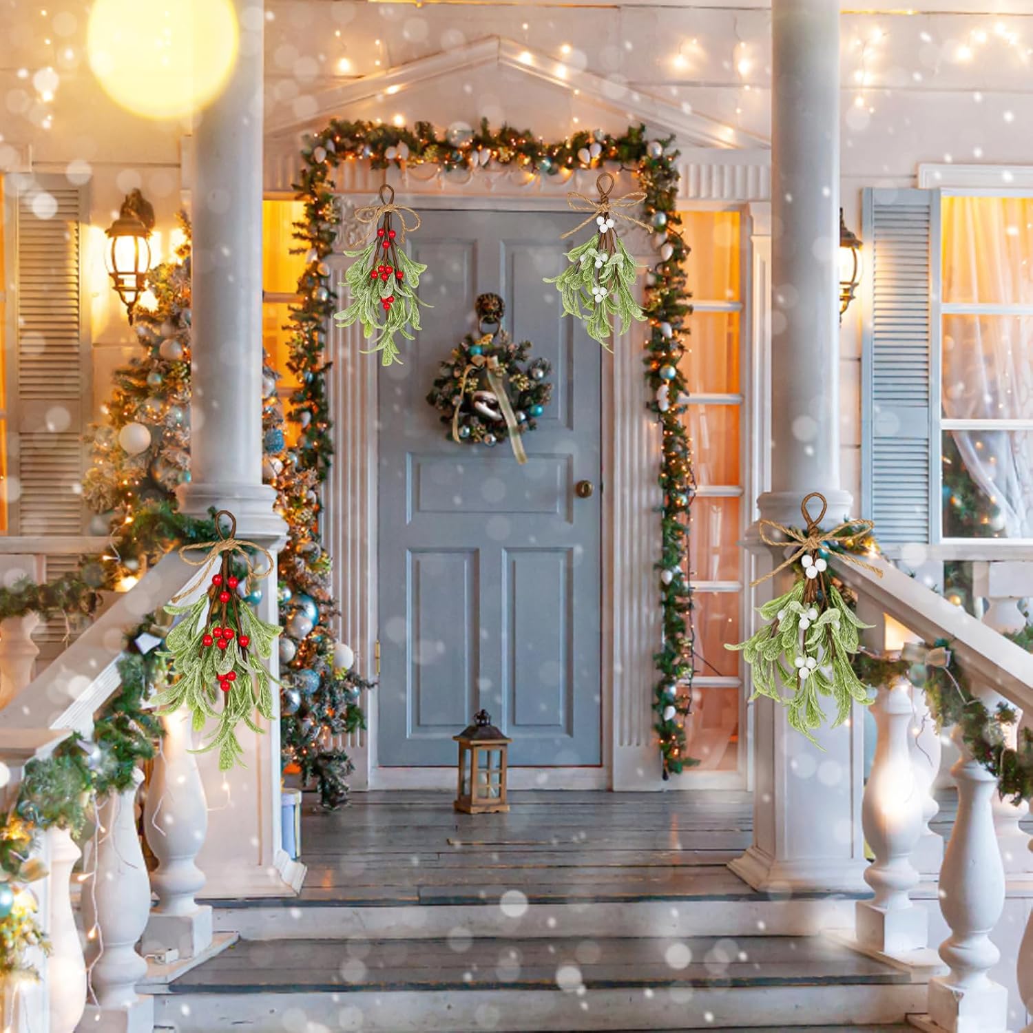 Висококачествената изработка и детайлният дизайн правят тези клонки от имел издръжлива декорация. Можете да ги използвате както на закрито, така и на открито, за да украсите прозорци, дървета или тавани.