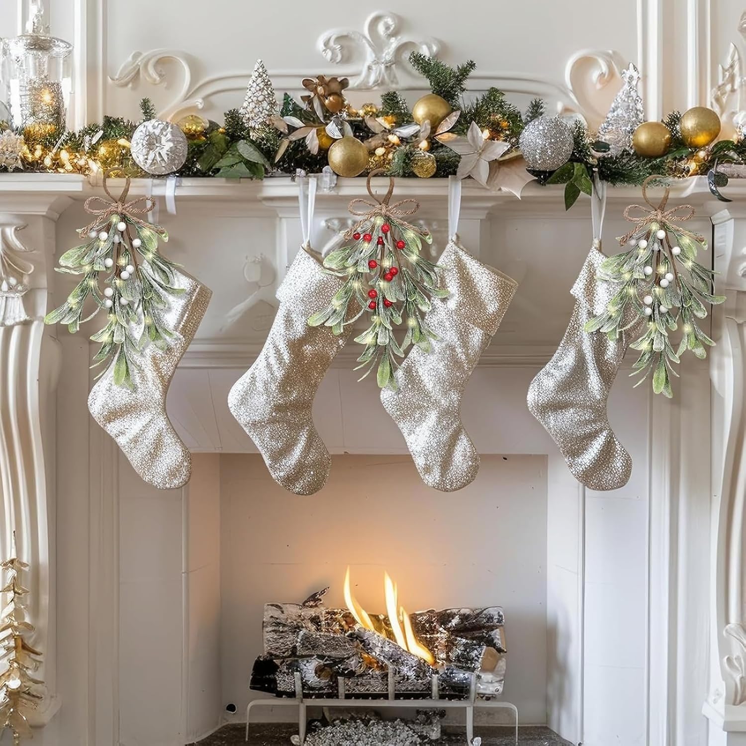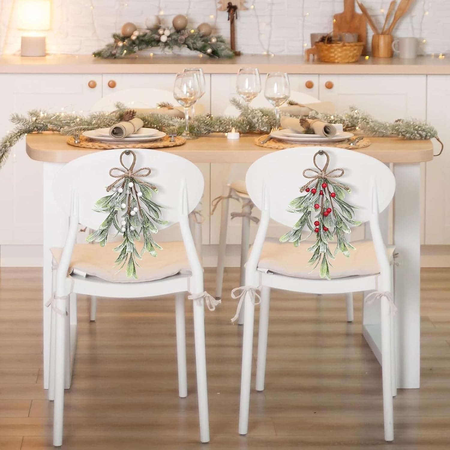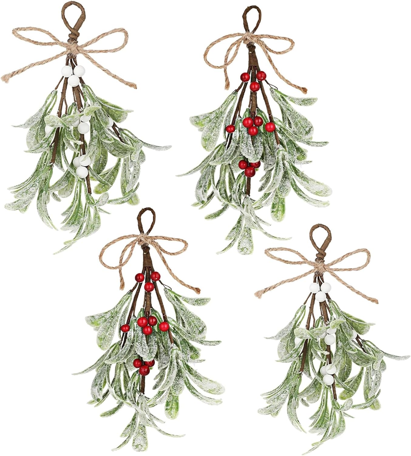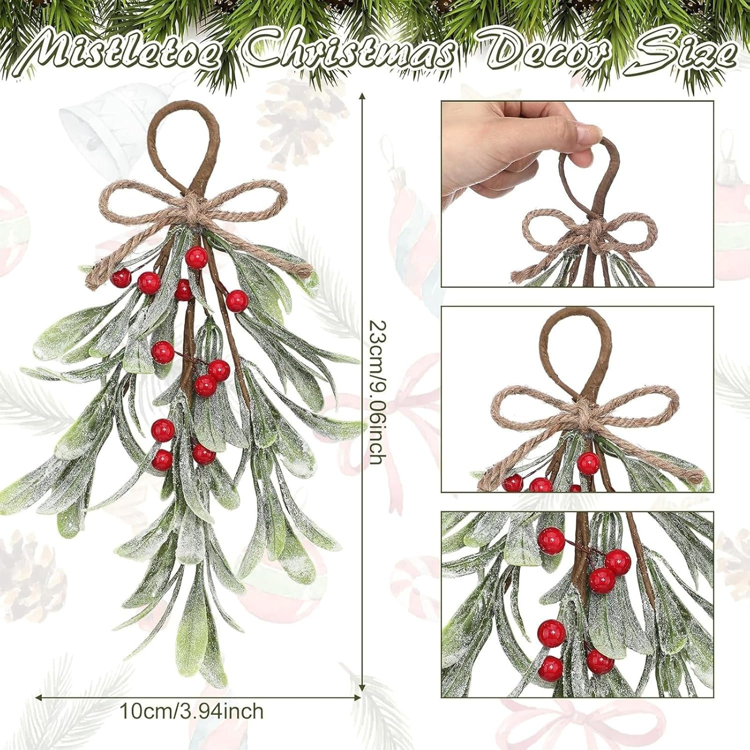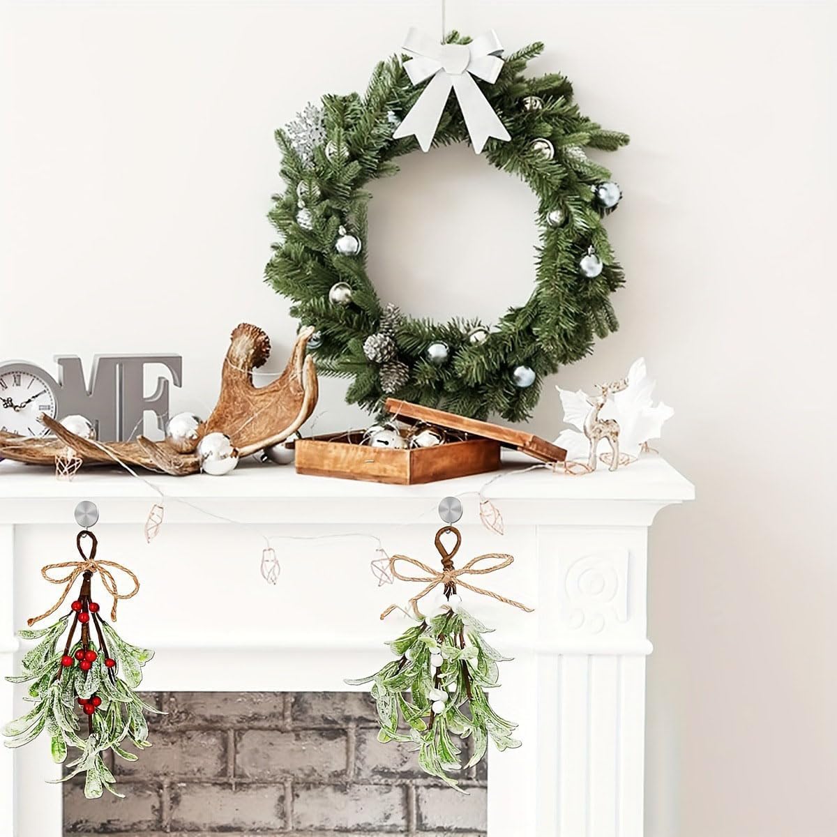 Пакет от 4 коледни декорации от имел, 23 см изкуствени клонки от имел с червени плодове, висяща декорация от имел, украса за коледна елха