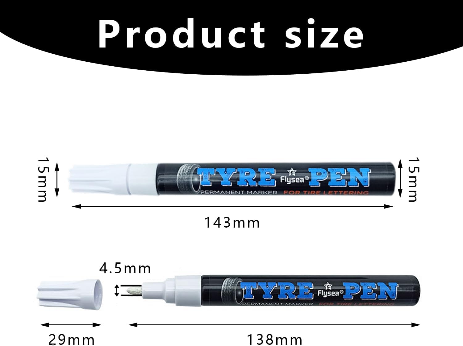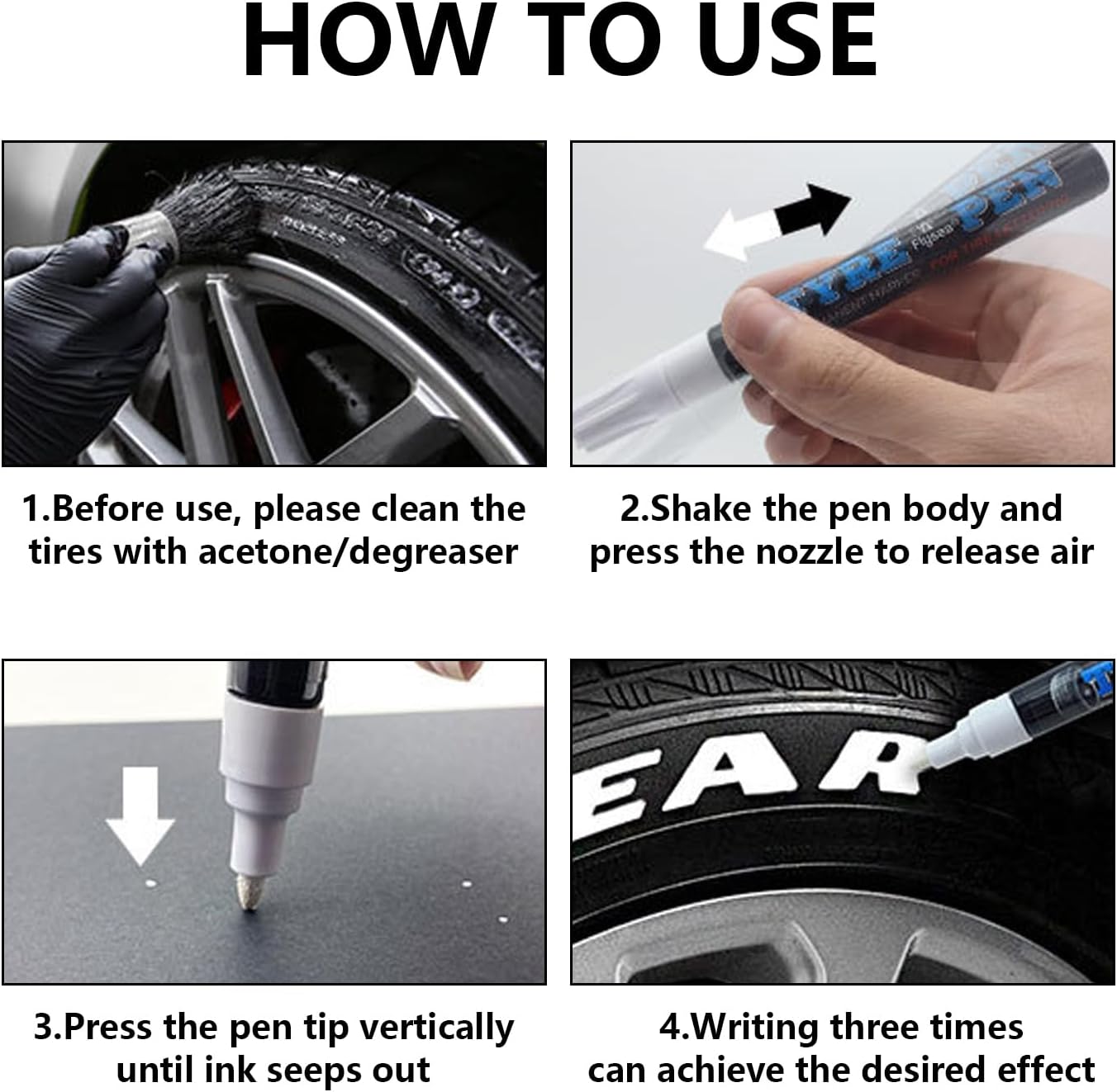 Открийте многофункционалността и качеството на нашия бял химикал за автомобилни гуми. Те са издръжливи, водоустойчиви и осигуряват дълготрайни маркировки, което ги прави идеалният инструмент за вашите творчески или практични нужди. Нашите химикалки се предлагат в комплект от 4, така че винаги да имате достатъчно мастило под ръка, независимо дали искате да маркирате в голям мащаб или просто да създадете уникален дизайн върху гумите си. Бялото мастило осигурява ясни, ясно видими маркировки, които са едновременно практични и естетически приятни. Освен това, нашите химикалки са лесни за употреба и позволяват прецизно писане и рисуване върху повърхността на гумата. Опитайте нашия бял химикал за автомобилни гуми още днес и се насладете на качеството и многофункционалността, които предлагат.