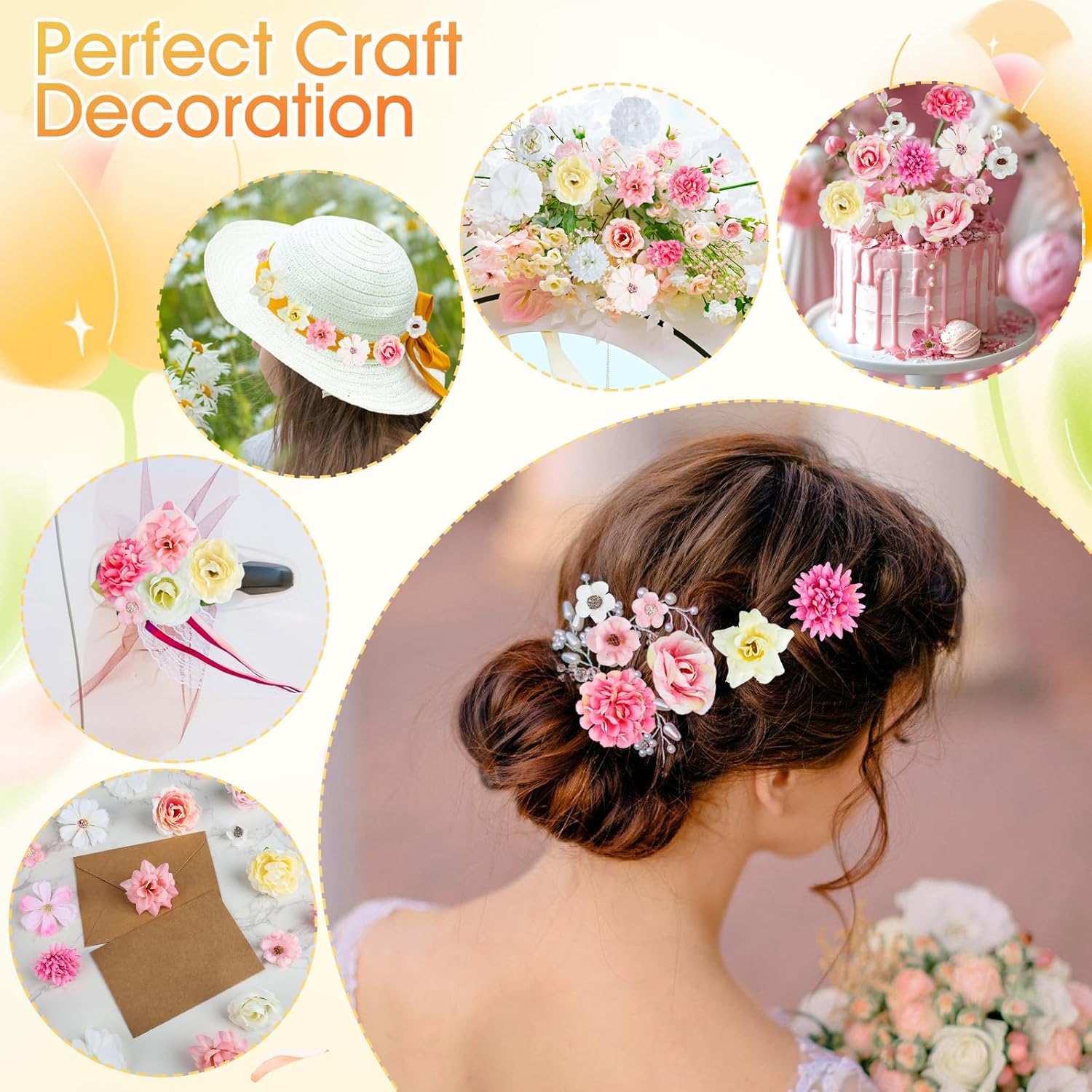 Изкуствените цветни глави са подходящи за рождени дни, сватби, кръщенета, бебешки партита, чайни кухни, украса за детски градини или други тържества.