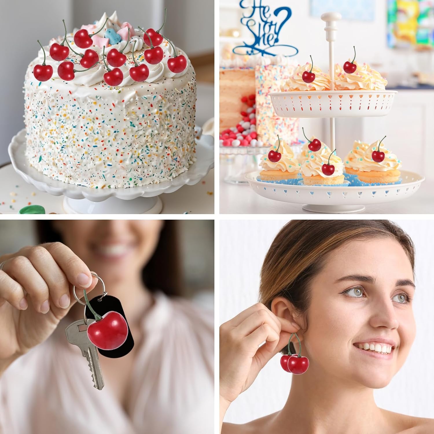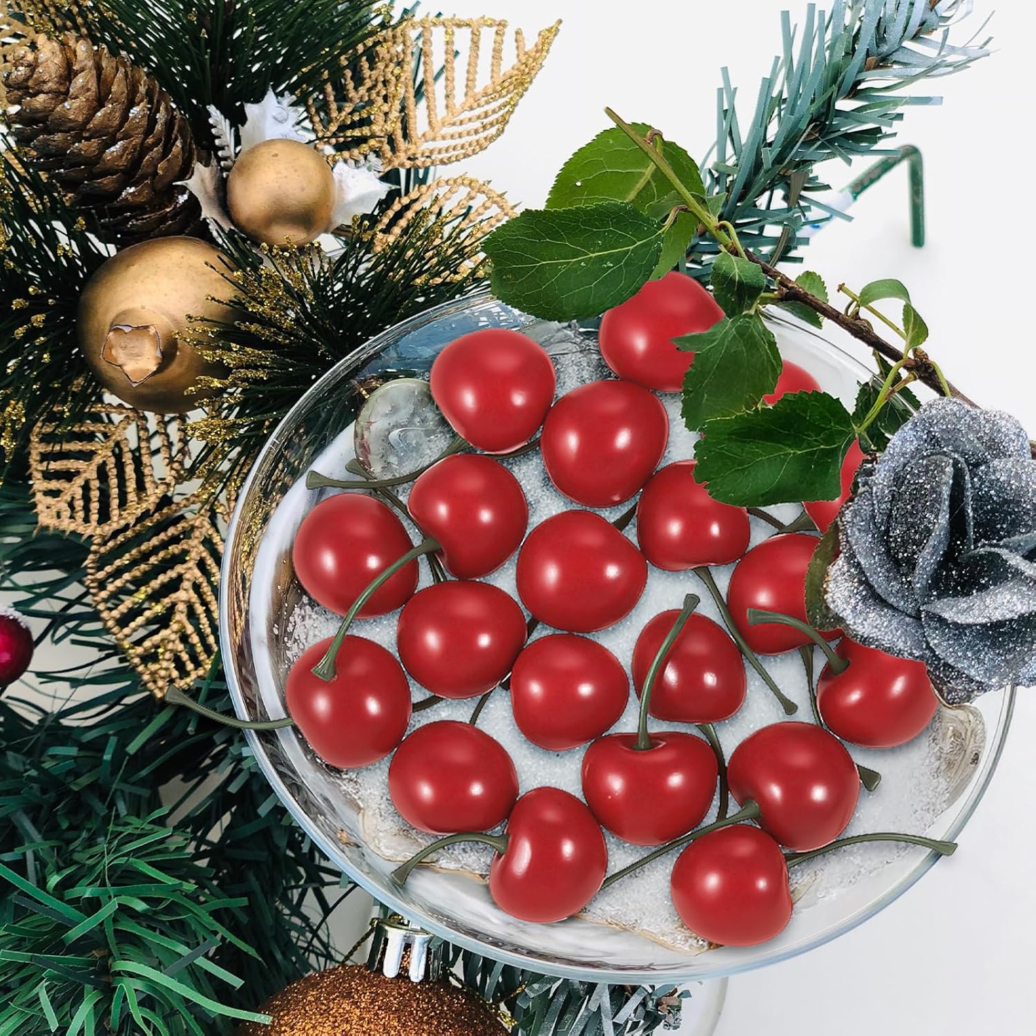 • ШИРОКИ ПРИЛОЖЕНИЯ Тези изкуствени череши могат да се използват многократно, което ги прави чудесни за печене на торти, мъфини, занаяти, пълнители за вази, фото реквизит, купи за плодове, централни елементи за кухненска маса, декорации за дома и хранителните пазари и др.