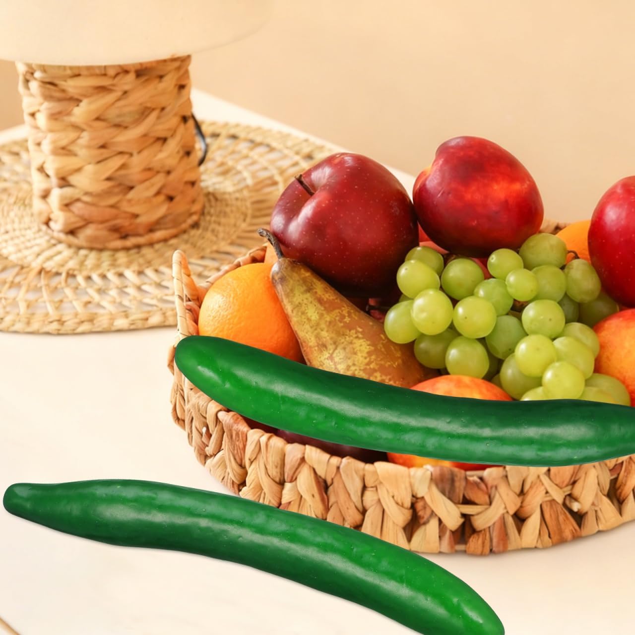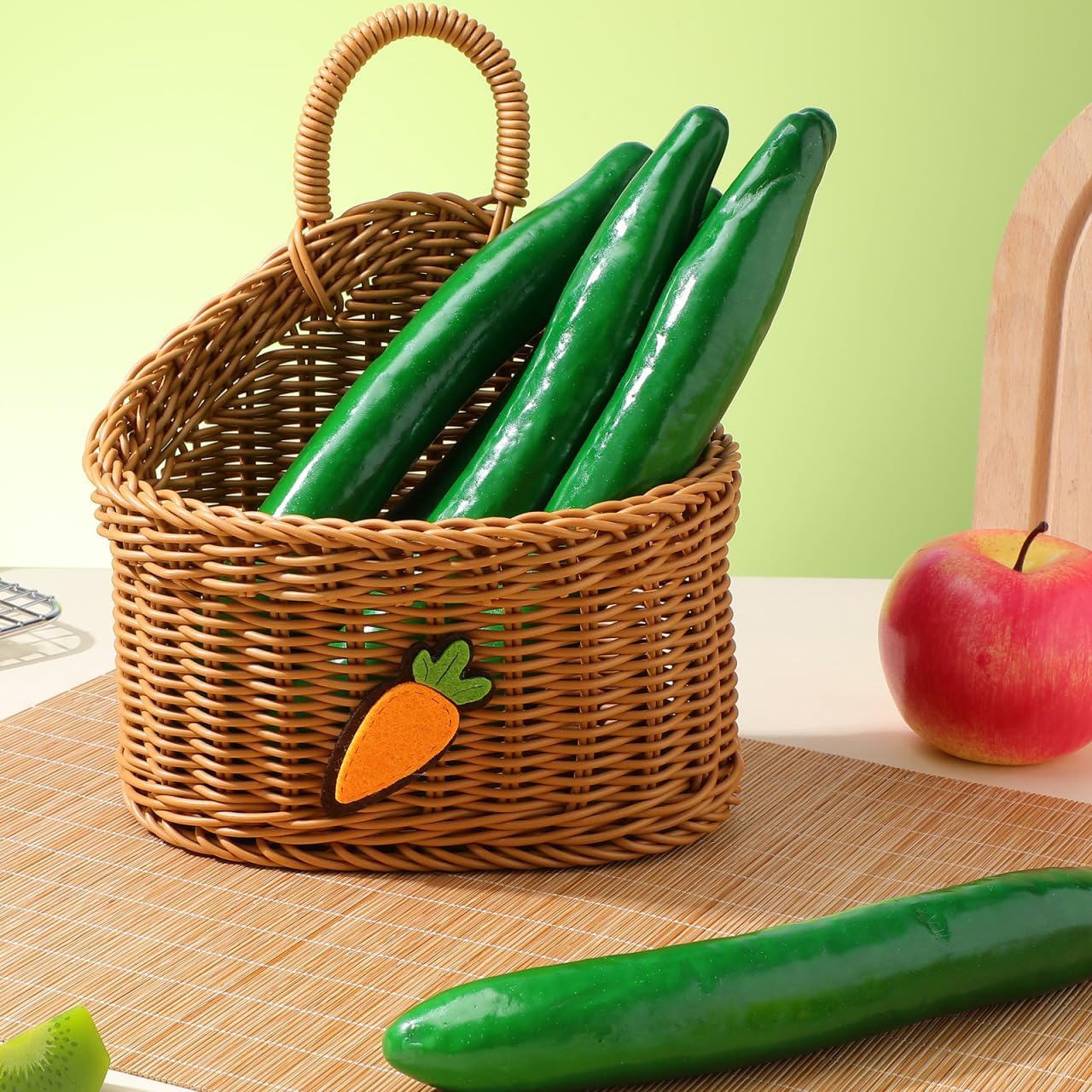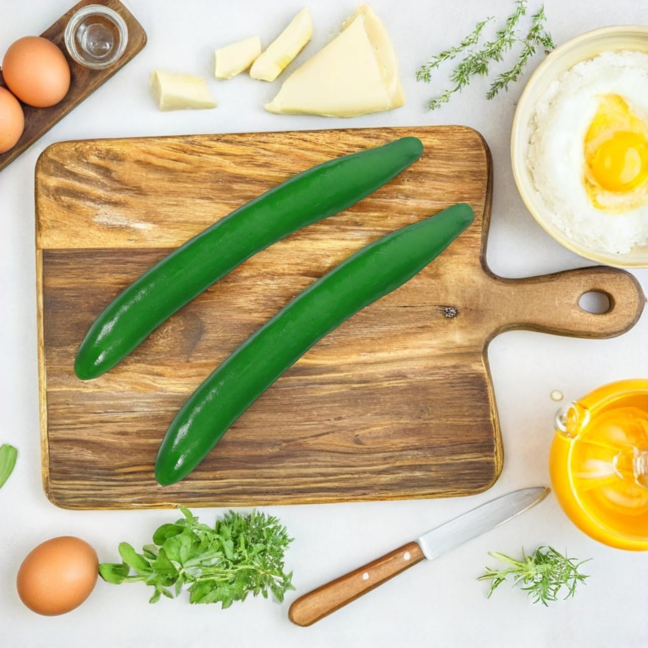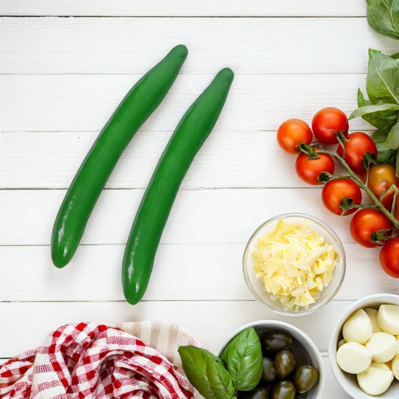 • Естествени нюанси: зеленият цвят на симулирания модел на краставица осигурява свеж и реалистичен вид, който се вписва хармонично в широка гама от стилове на декорация и фотографски комплекти.