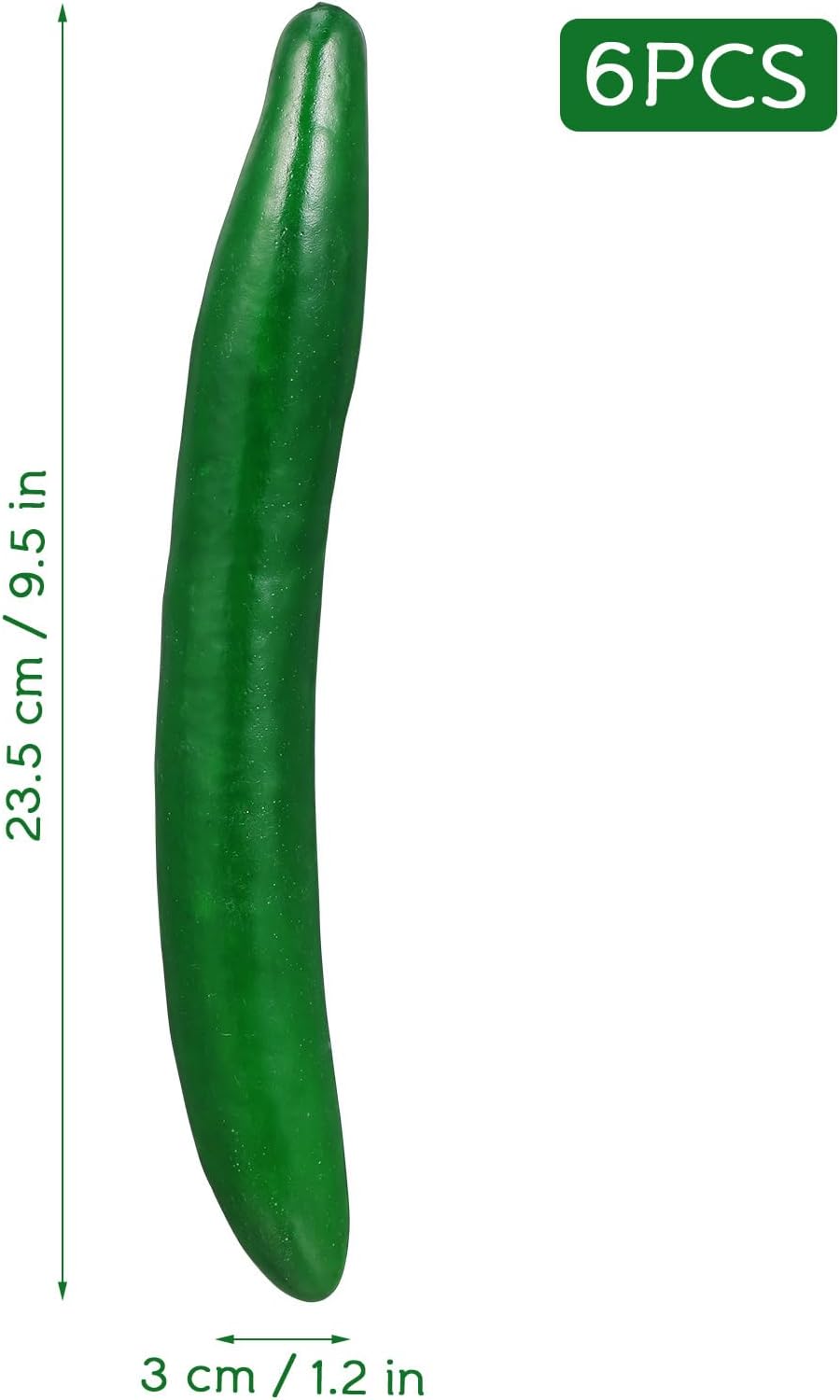 • Реалистичен дизайн: симулираният модел на краставица е с размери приблизително 9,45 x 1,18 x 1,18 инча и впечатлява с реалистичната си форма и цвят, идеален като имитация на краставица за витрини, фотография или декорация в домакинството.
