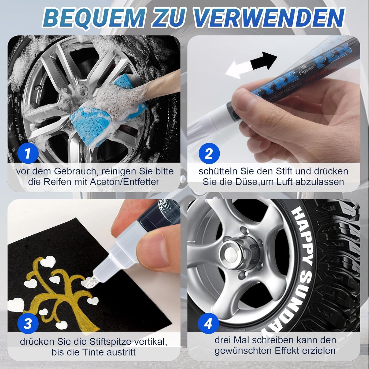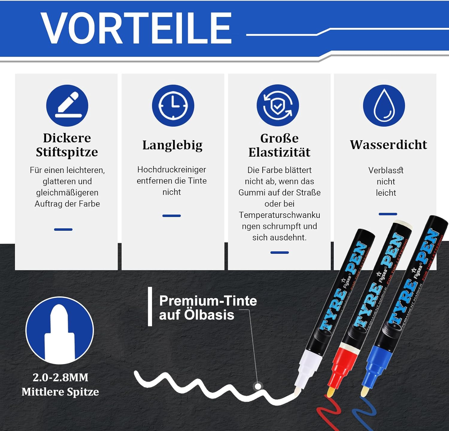 - Включва 6 маркера за автомобилни гуми, всеки с много мастило за дълготрайна употреба.