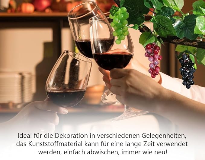 • Здрав материал: декорацията с изкуствени плодове е изработена от пластмаса, цветна, неплъзгаща се, много издръжлива, устойчива на повреди и избледняване и може да се използва за дълготрайна декорация. След продължителна употреба можете да почистите праха по изкуственото грозде с вода.