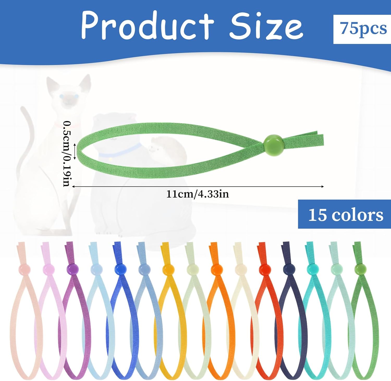 • 【Съдържание на опаковката】Тази опаковка съдържа 75 нашийника (15 цвята, по 5 нашийника във всеки цвят). Светлоустойчивите нашийници позволяват лесно цветово кодиране на нашийници от всякакъв размер. Те осигуряват ясна идентификация на кученца и котенца, като същевременно запазват цветовата постоянство дори след подмяна.