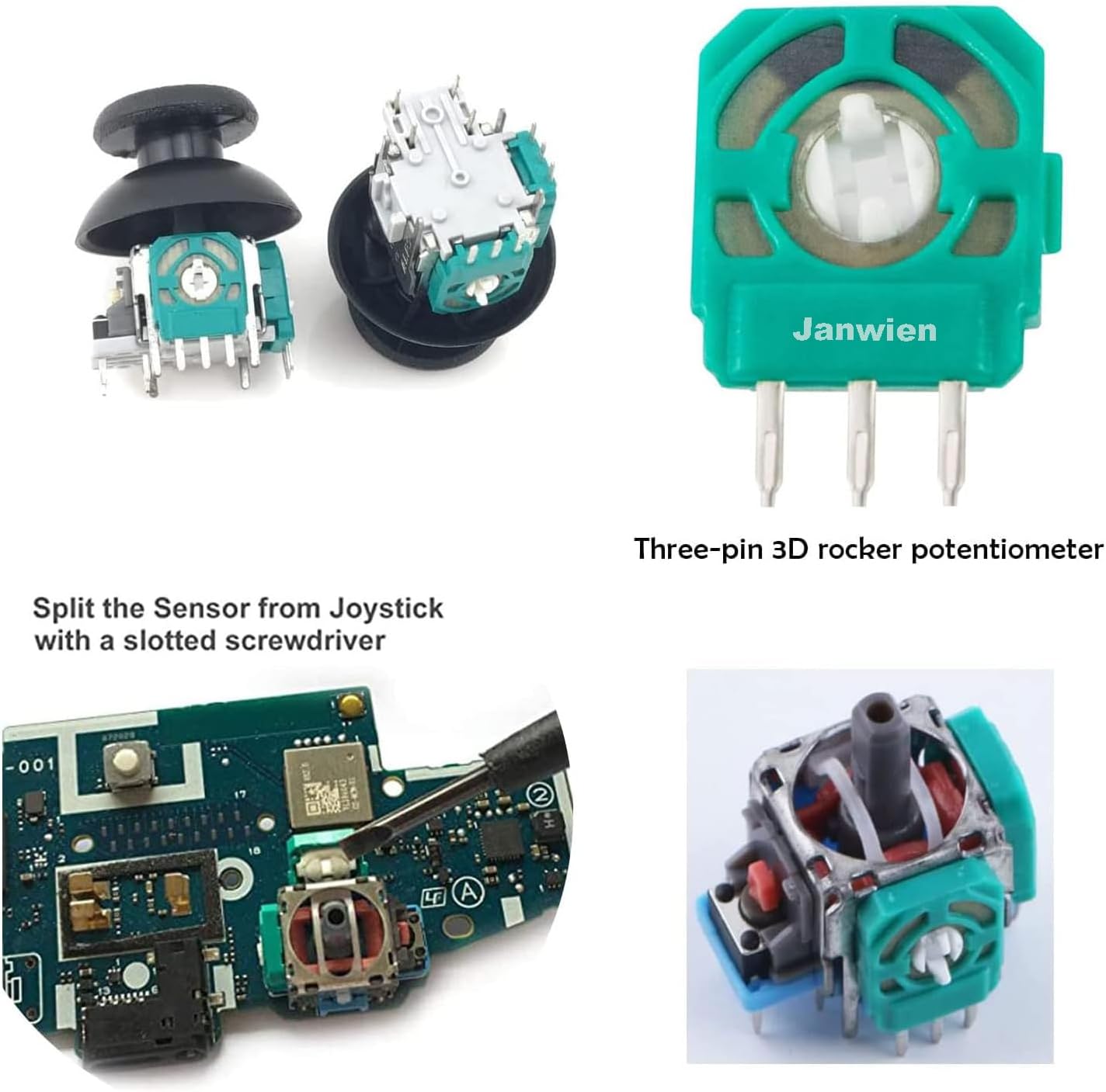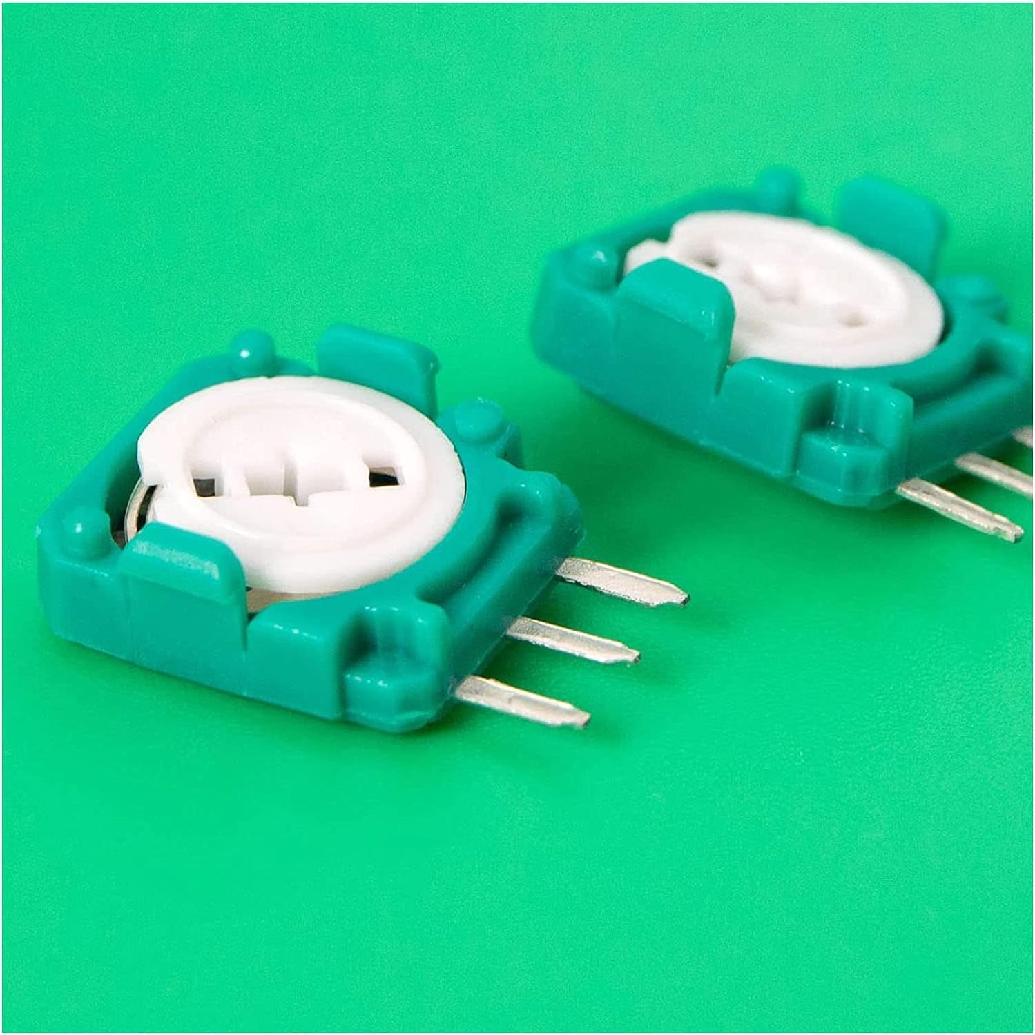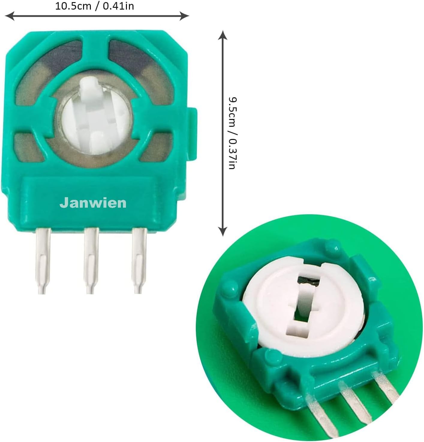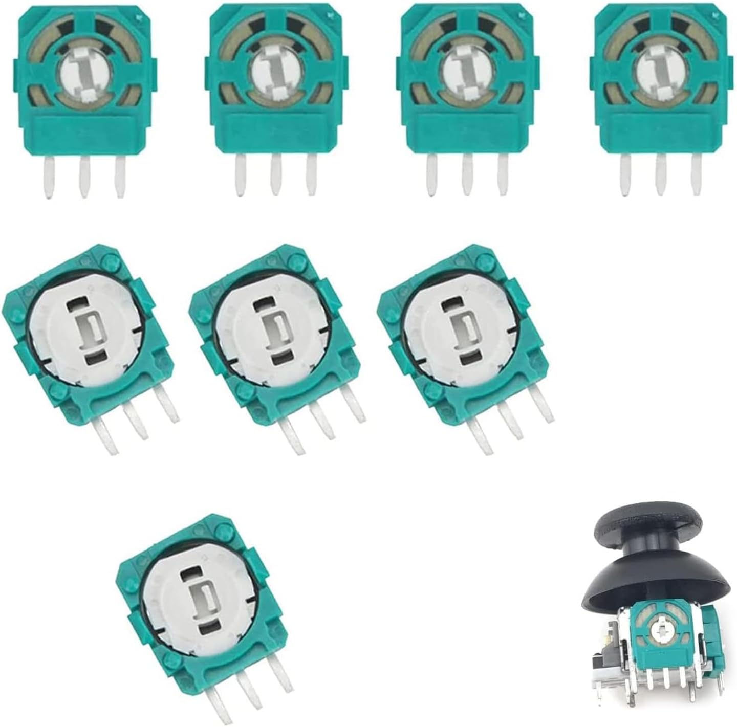 Характеристики: Има две различни стойности на съпротивлението. Уверете се, че стойността е около 2.3K преди да поръчате. Сложният механизъм за движение и ежедневното износване в крайна сметка доведоха до отклонение. Дори новите сензори не могат да бъдат съчетани на 100%. Калибрирането в настройките на контролера може да не проработи. Запоете един или два паралелни малки резистора към потенциометъра в обратна посока срещу отклонение. Това помага за коригиране на отклонението от 3 до 5 градуса. Внимание: Изберете версията 10k Ω за повечето контролери за PS3, PS4, Xbox One, Elite Series 1 и 2, Xbox Series SX и Switch Pro. Спецификации: Име на продукта: Потенциометър за джойстик PS5. Размер на продукта: 10.5 x 9.5 см. Цвят: зелен. Материал: метал, пластмаса. Пакетът включва: 8 x потенциометъра за джойстик PS5. Бележки: Поради ръчно измерване е възможно да има някои отклонения.