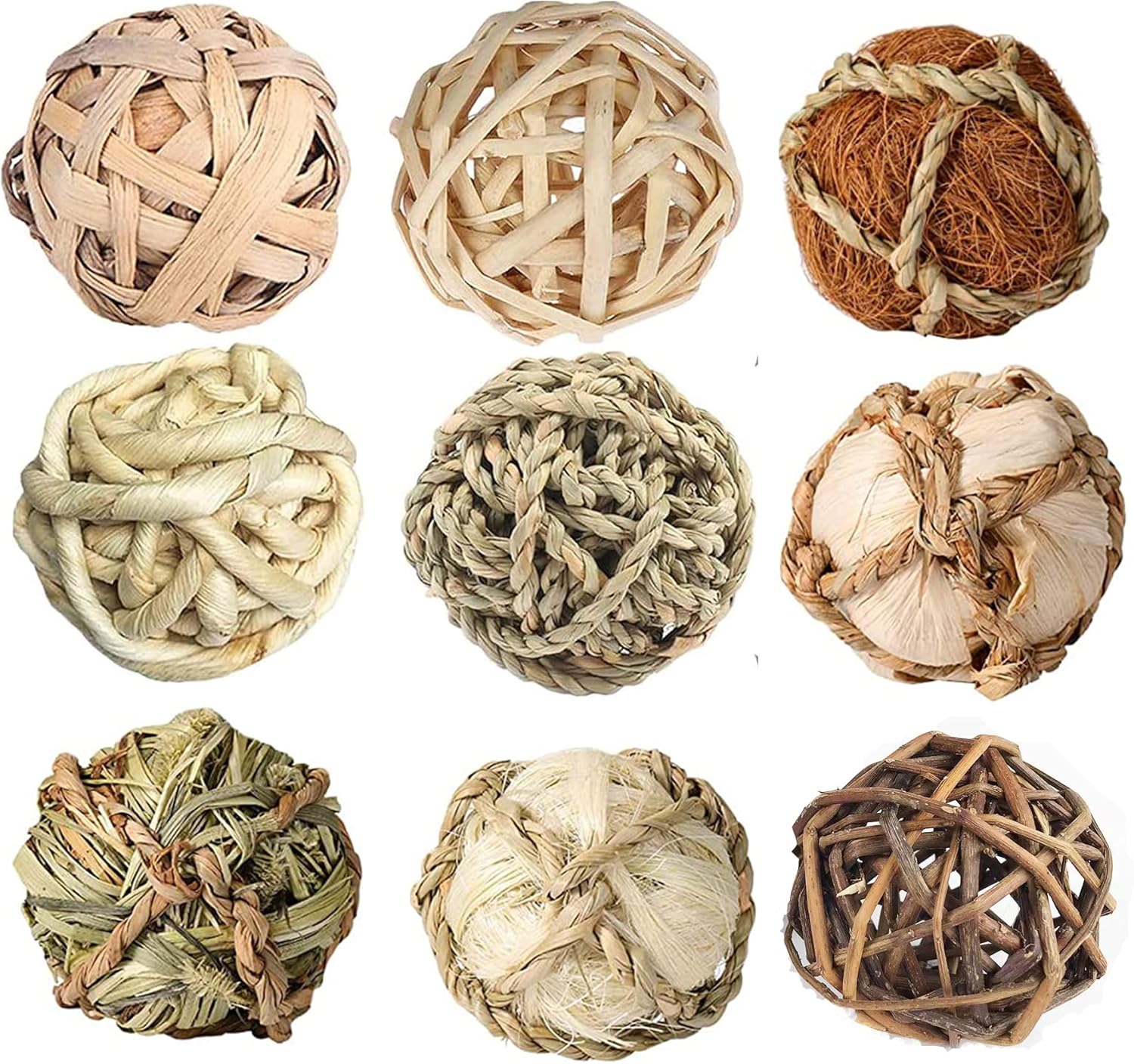 Ръчно изработени тревни топки, изработени от естествени водорасли, вода от яцинт, ратан, кокосови влакна, царевична трева и тимотейка.