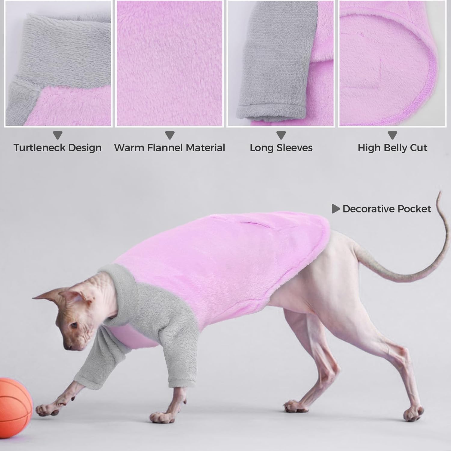 • Топло: Това облекло за котки от породата Сфинкс е дебело, меко на допир и е подходящо за носене в студено време. Пуловерът за котки напълно обгръща тялото на котката и осигурява топлина на вашия приятел. Освен това, якето за котки поддържа котките чисти и ги предпазва от наранявания по време на състезания и игра.