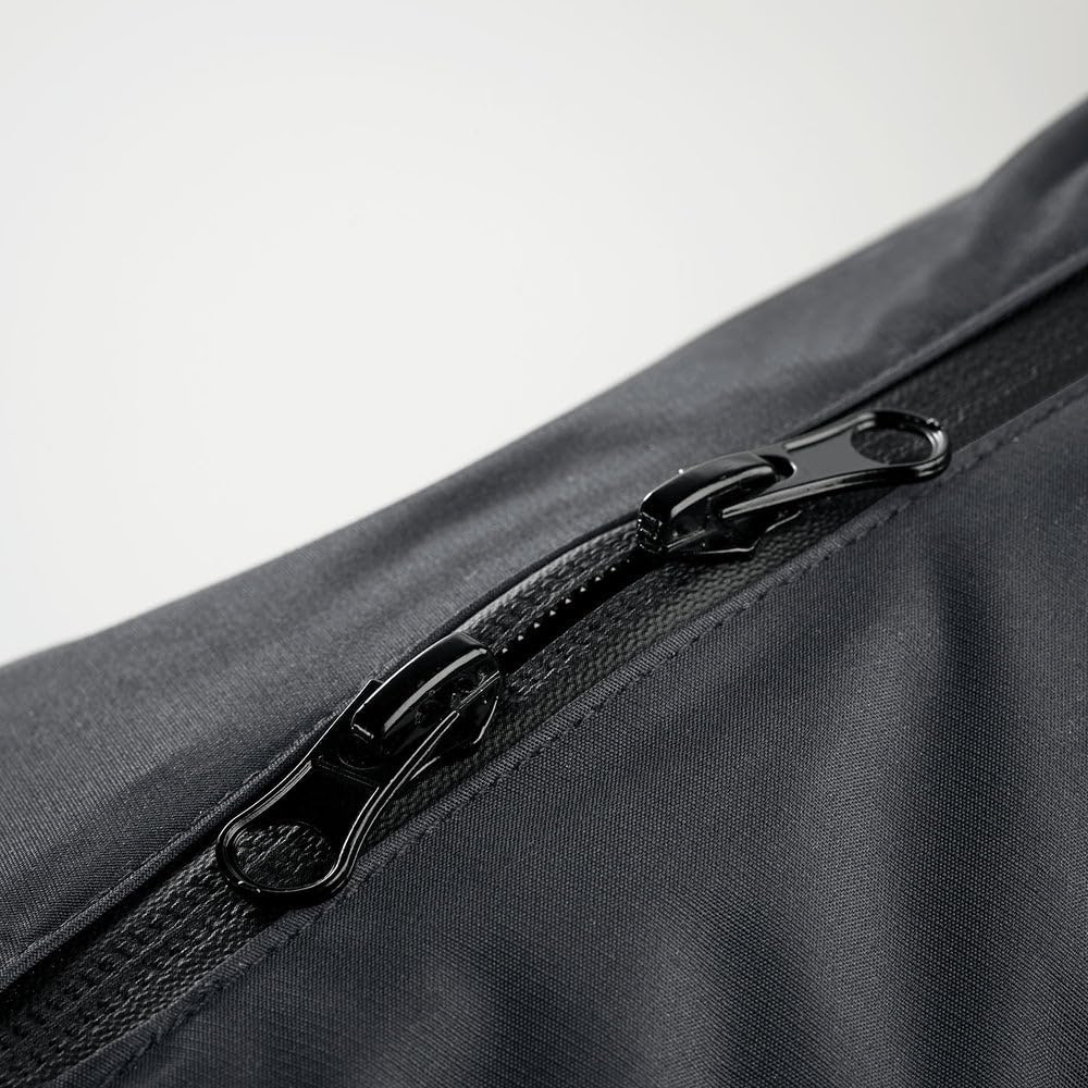 • Разполага с водоустойчив и регулируем двупосочен цип отгоре за колани и отвор за закрепване на каишка към нашийника.