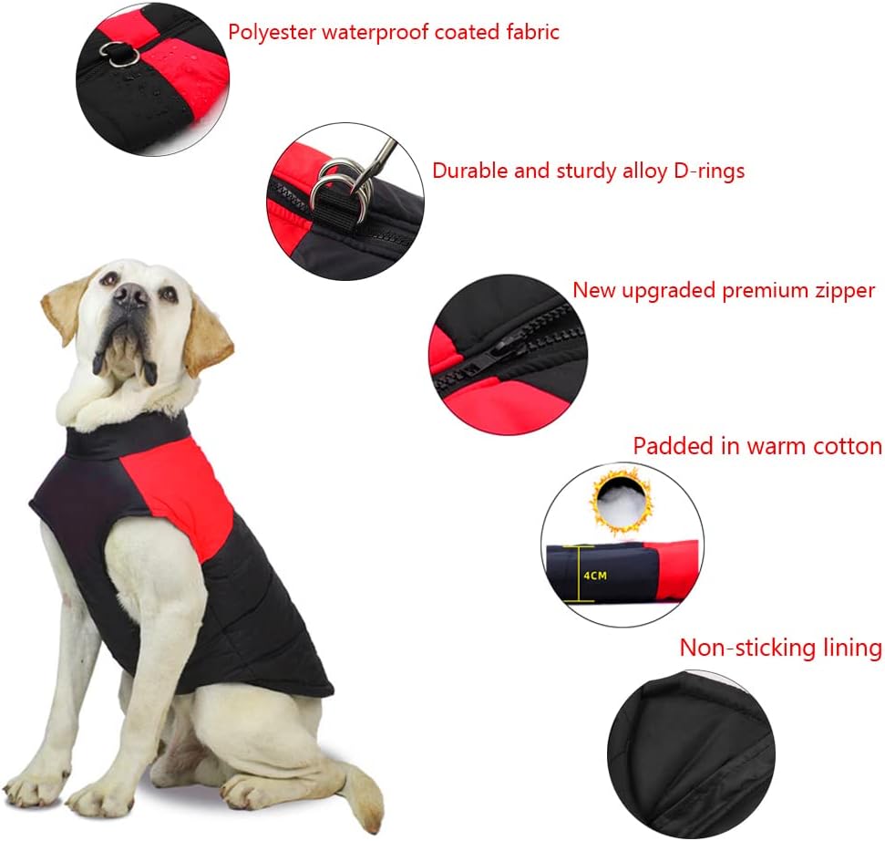 • Запазва топлината: Изработено от водоустойчив полиестер с покритие, ветроустойчиво и устойчиво на сняг. Палтото за кучета е подплатено с топъл памук, така че кучето ви да може да се адаптира към студеното време и да играе на открито.