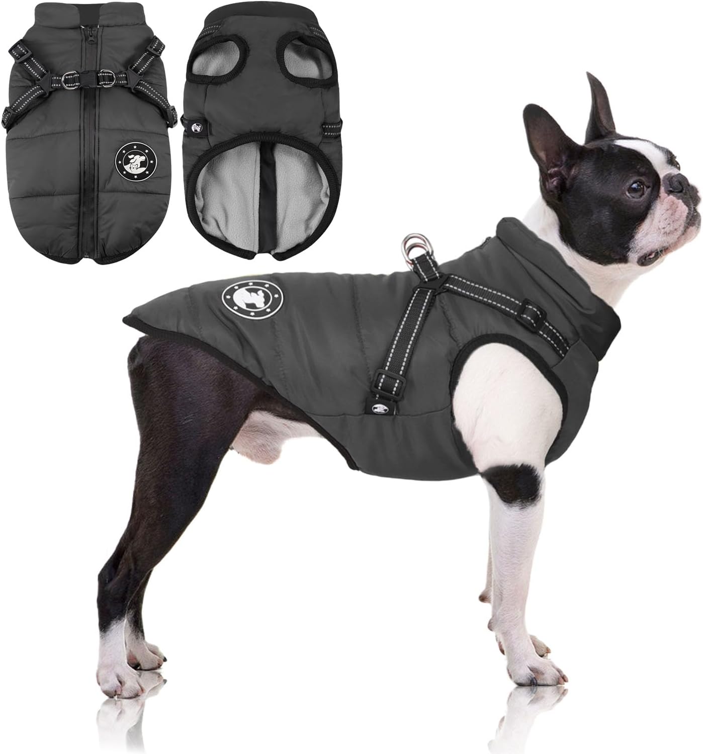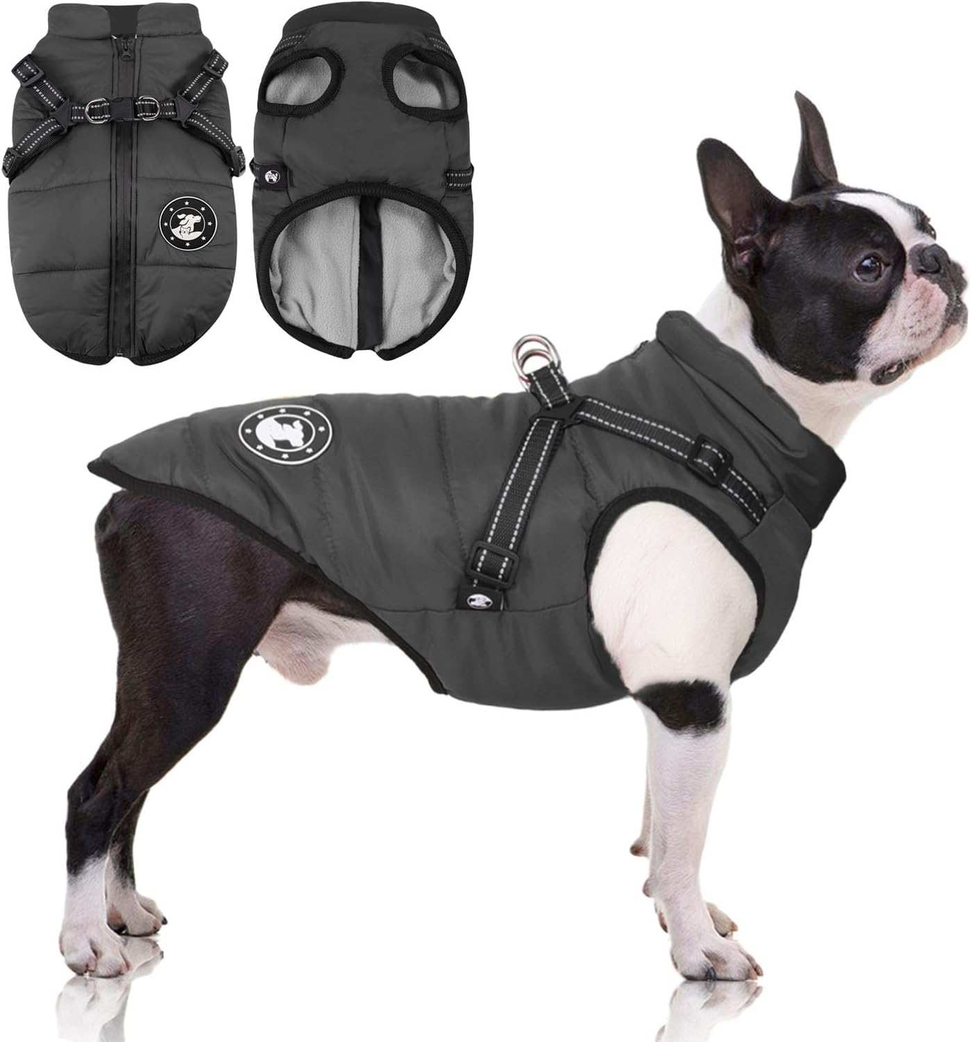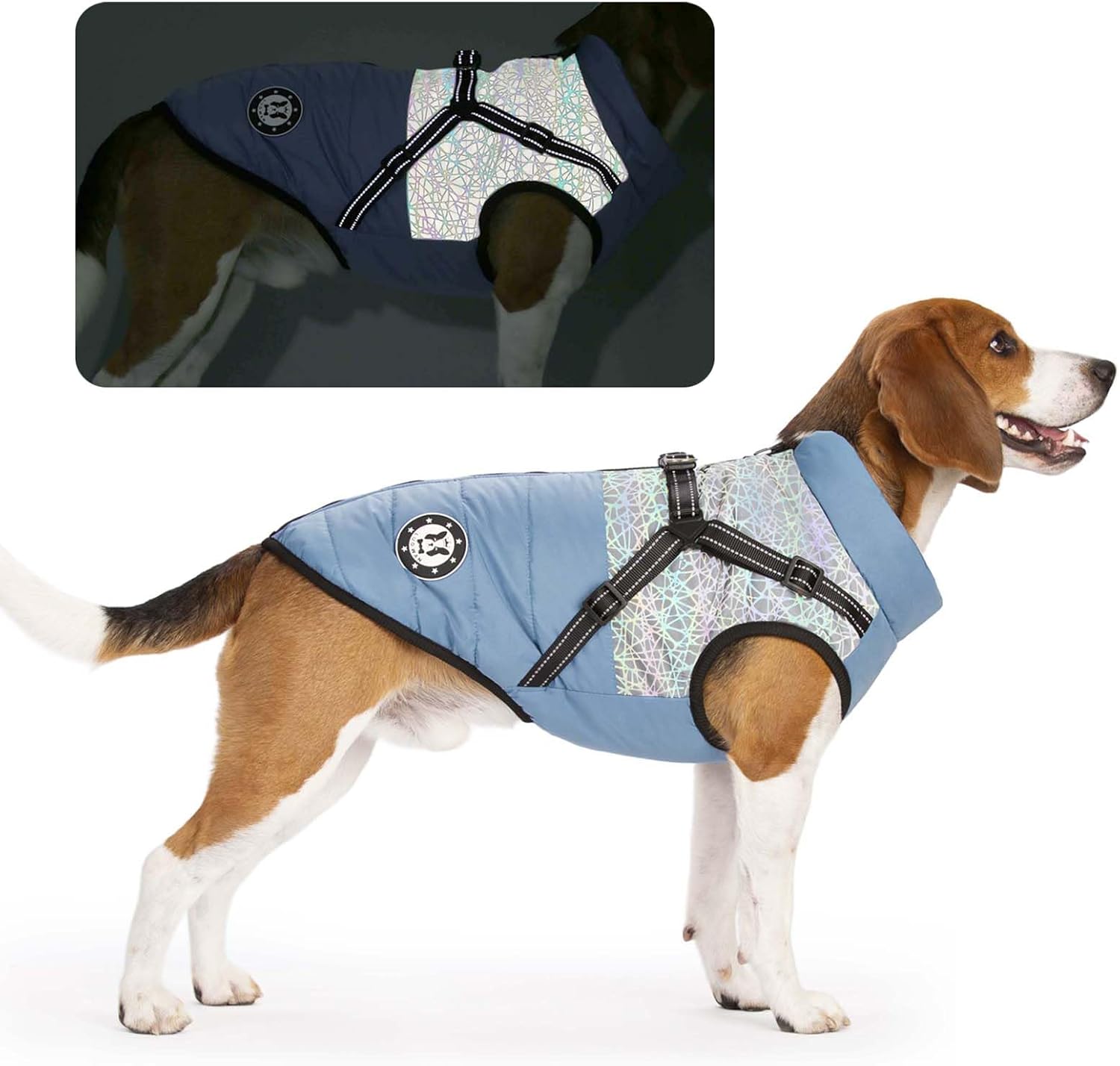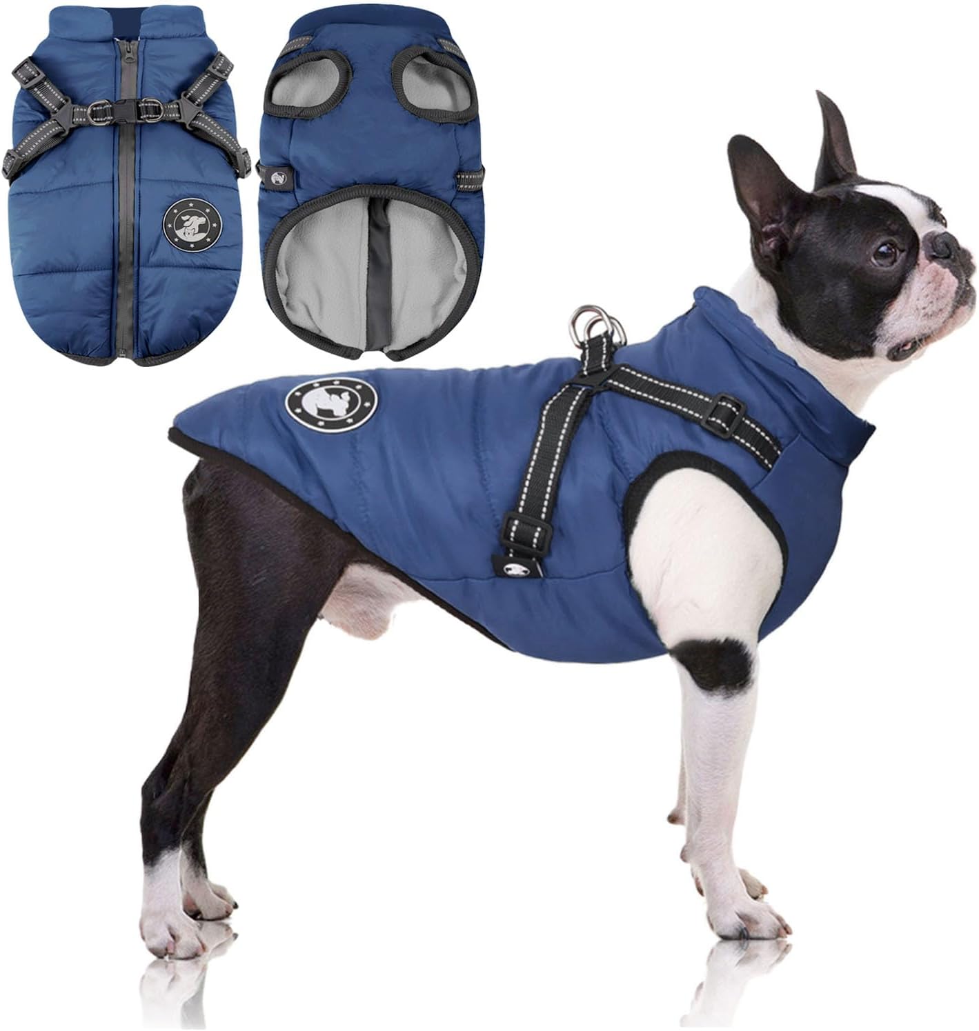 Палто за кучета LUOWAN за малки кучета, Яке за кучета с нагръдник, Водоустойчиво топло зимно палто за малки и средни кучета, Може да се пере в пералня, Дизайн със светлоотразителни ивици, Издръжлив D-образен пръстен