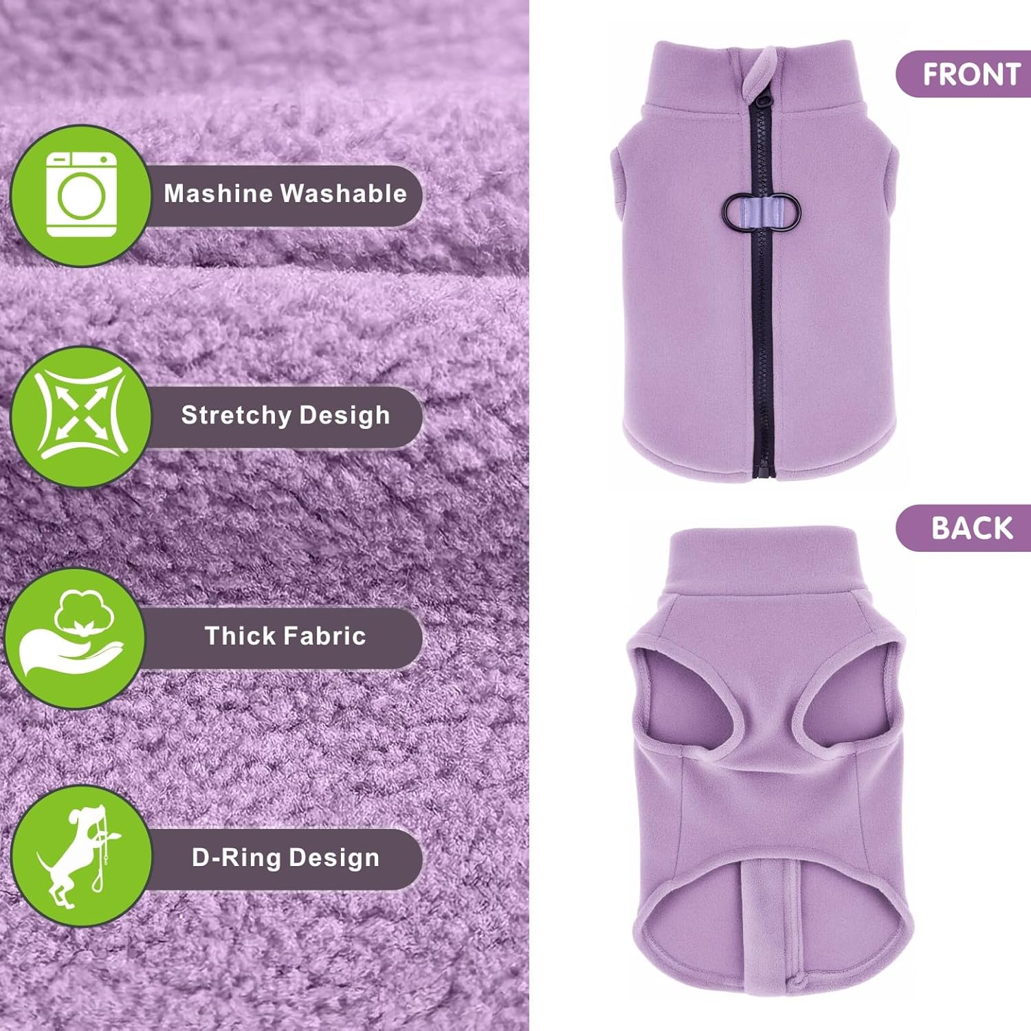 • D-образен дизайн: Сладко и стилно топло поларено яке/пуловер за пролетни, есенни и зимни дни, лесно за обличане и събличане. С D-образен пръстен за закрепване на повод. Добра алтернатива на традиционния колан, за да направи преходите на открито лесни и удобни.