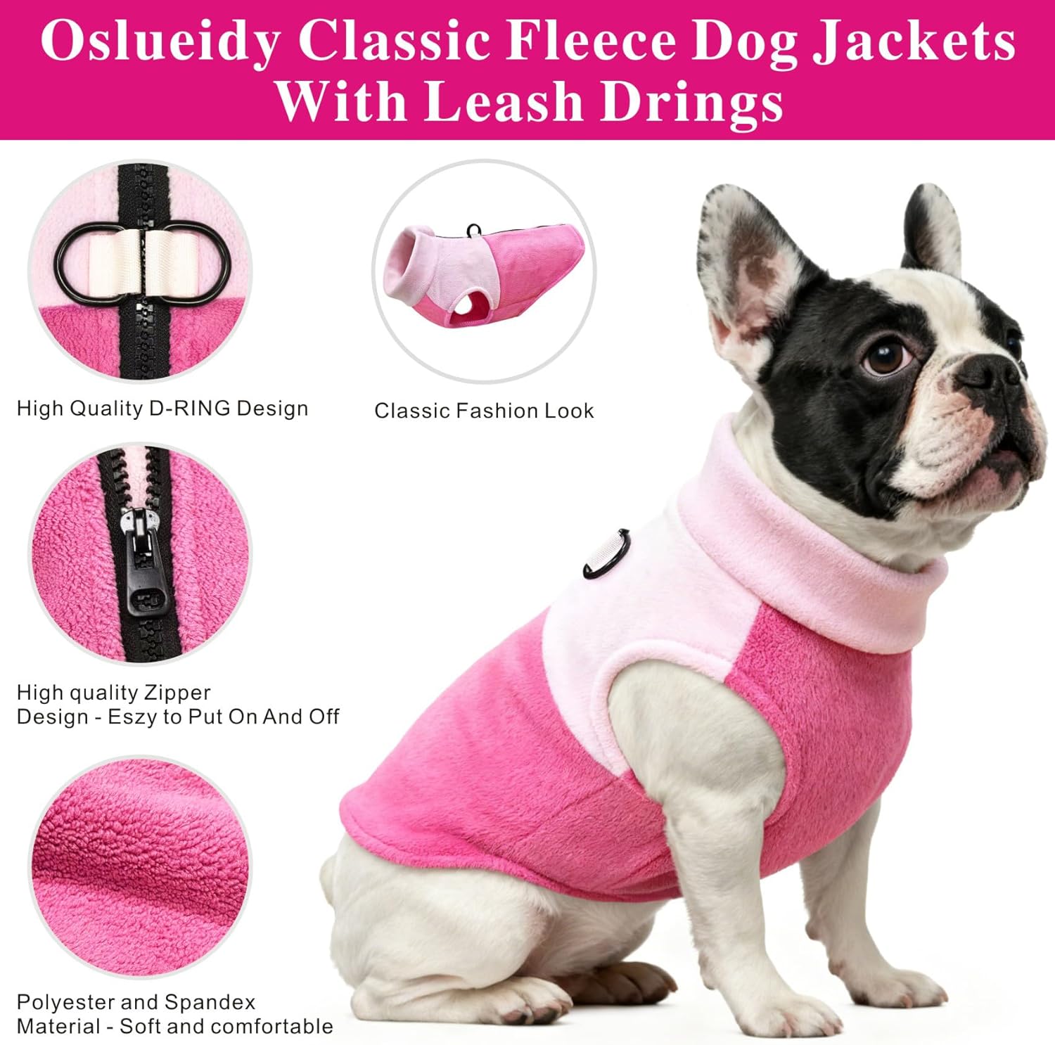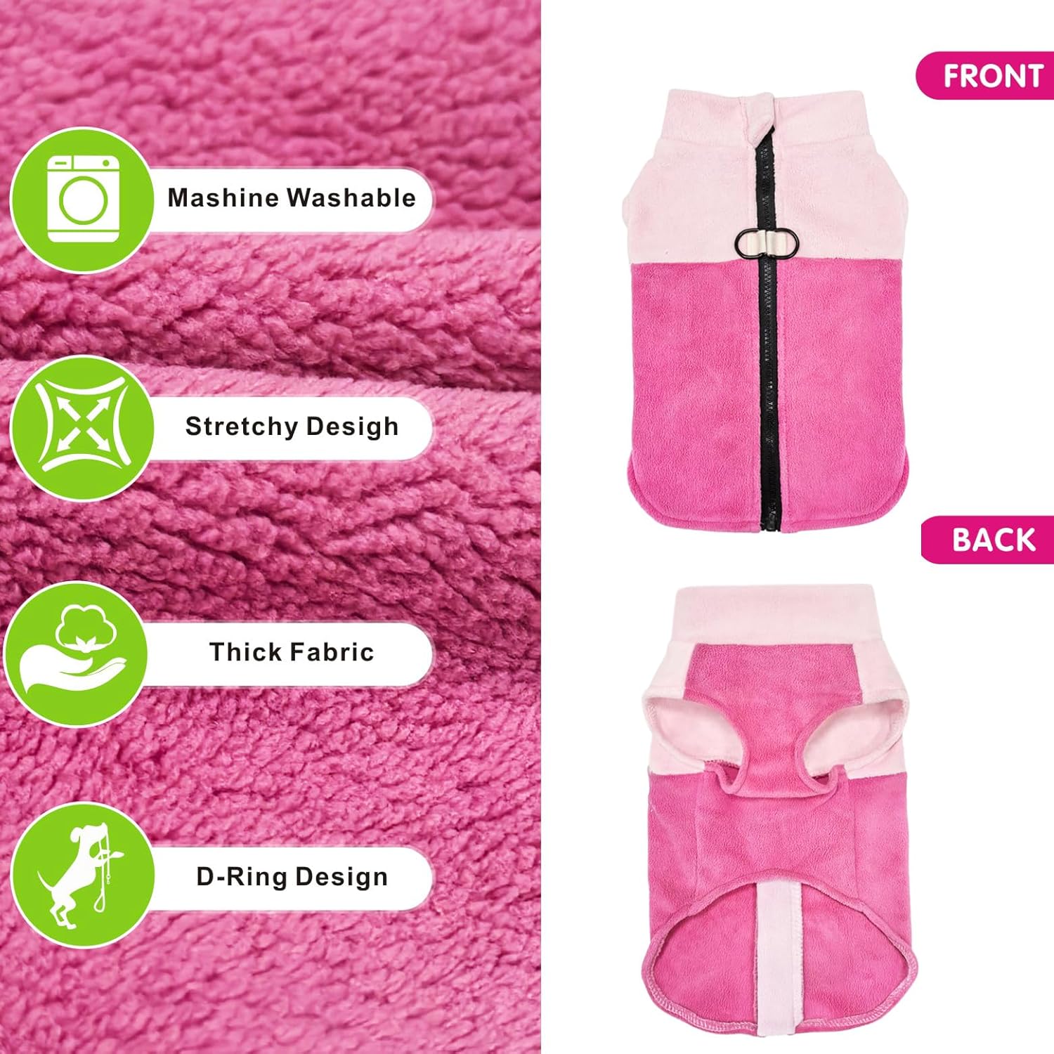 • D-образен дизайн: Сладко и стилно топло поларено яке/пуловер за пролетни, есенни и зимни дни, лесно за обличане и събличане. С D-образен пръстен за закрепване на повод. Добра алтернатива на традиционния колан, за да направи преходите на открито лесни и удобни.