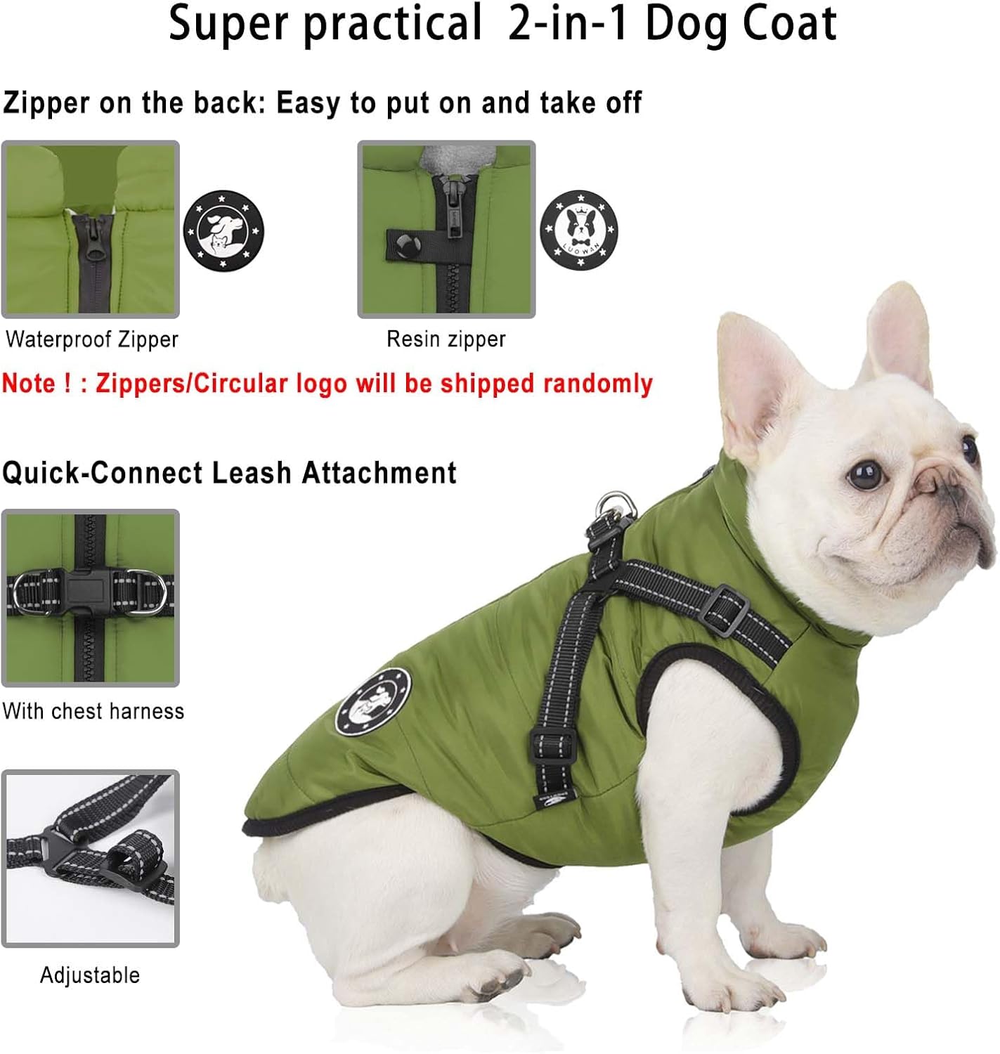 Палто за кучета с хамут, Зимно палто за малки кучета, Лесно за обличане и събличане, Топло и удобно, Светлоотразително, Водоустойчиво