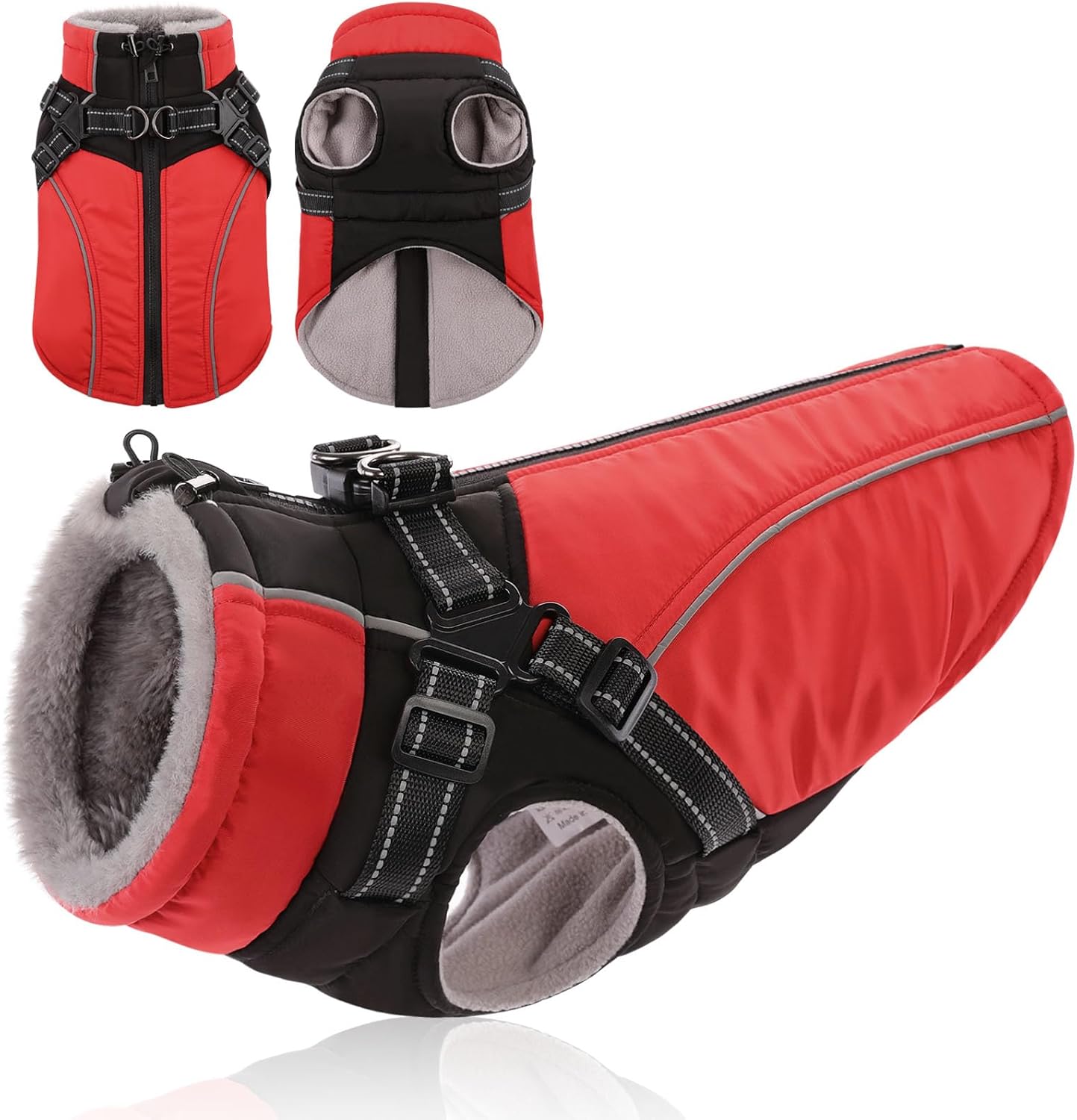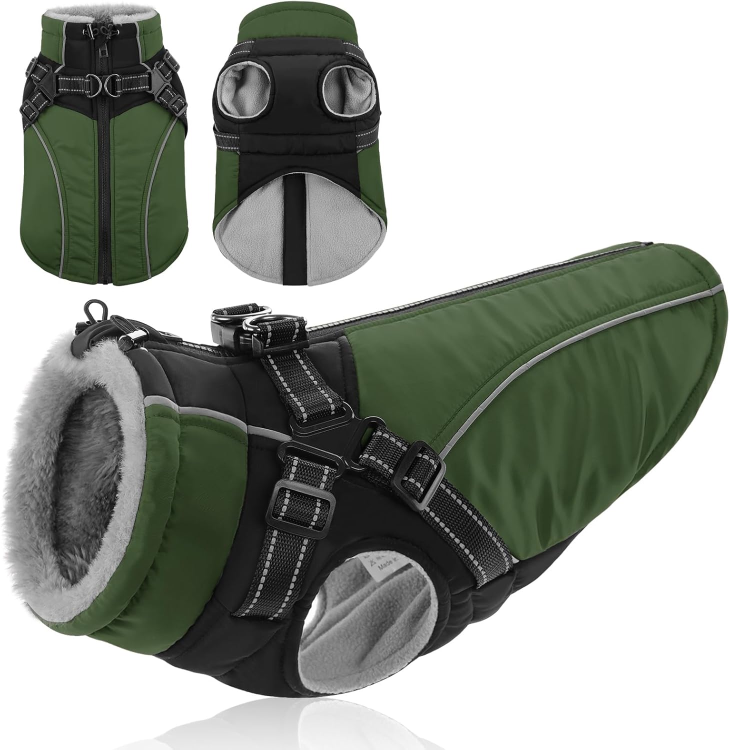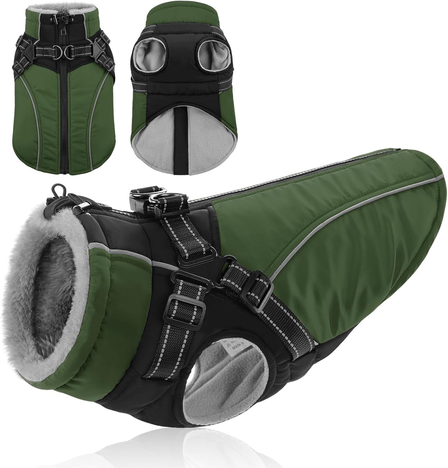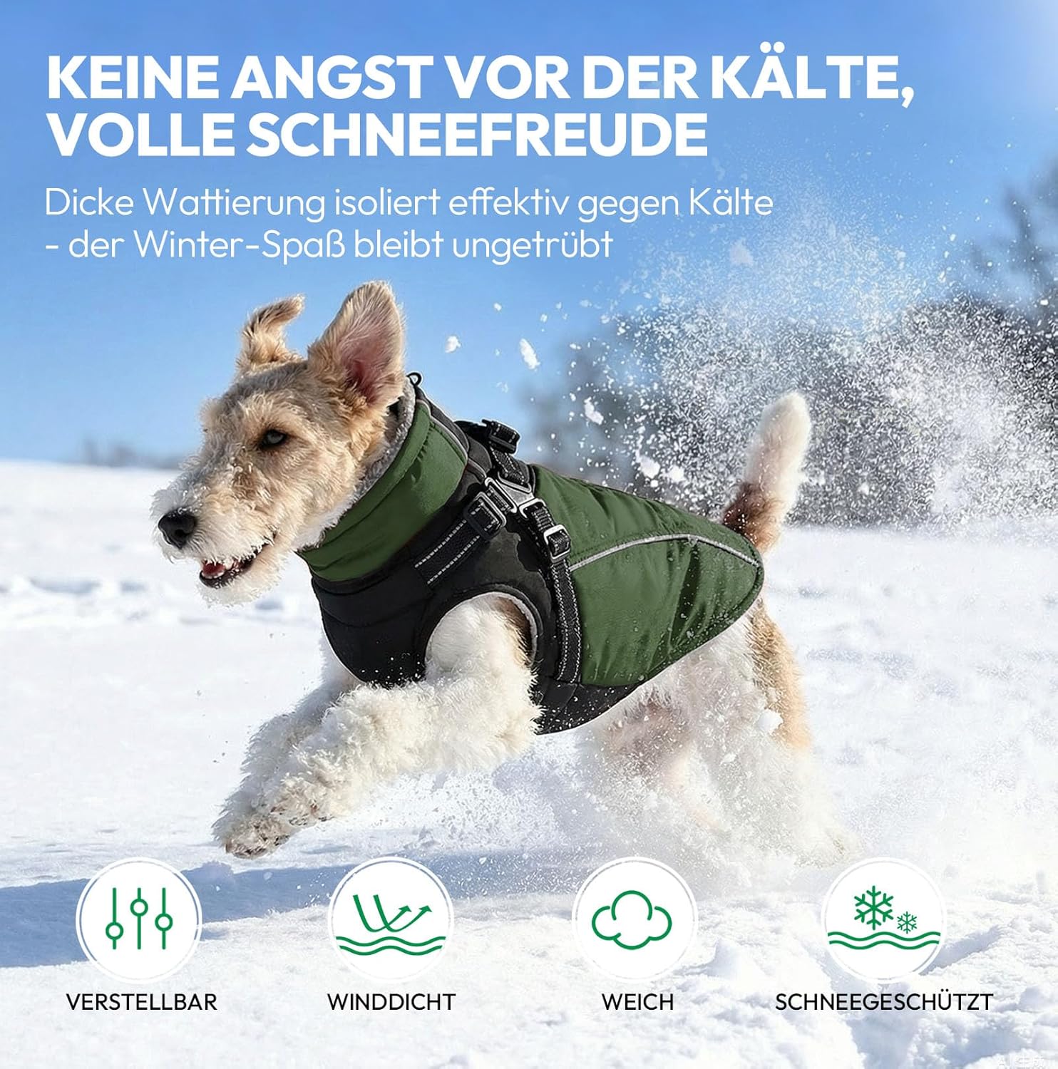 • Практичен вграден нагръдник: палтото за кучета с нагръдник позволява лесно обличане и допълнителна безопасност по време на разходки. Идеално за кучета на открито.