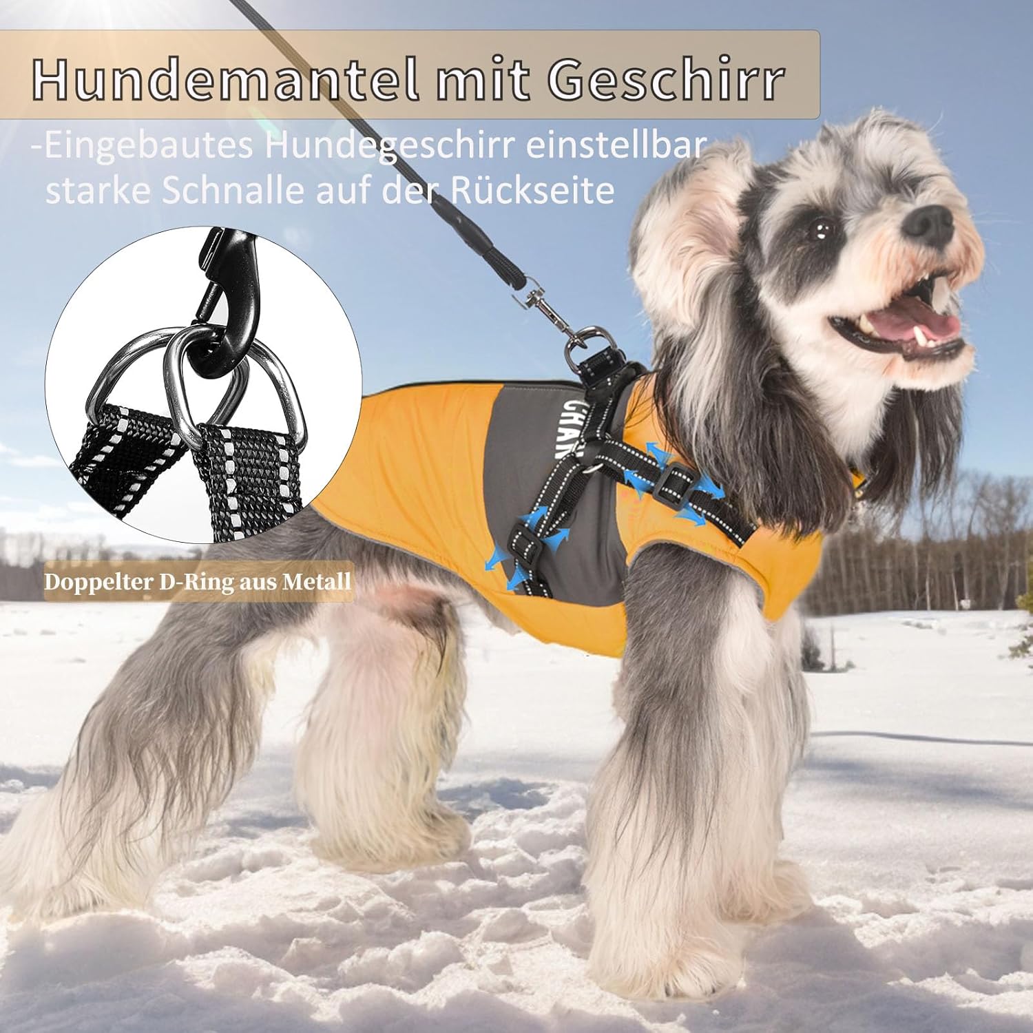 Палто за кучета с дизайн на нагръдник, не е необходим допълнителен жилетка за кучета, по-практично е за зимата навън с вашите кучета. Нагръдникът е вграден в палтата за кучета, което е по-удобно от нагръдника за кучета. С това зимно палто 2 в 1 за кучета можете да извеждате кучетата си навън по всяко време.
