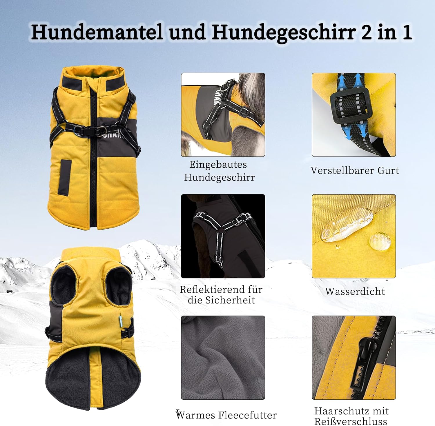 Това кучешко палто с хамут е изработено от полиестер и подплата от полар, външният слой е водоустойчив и ветроустойчив, а вътрешният слой е топъл и мек, поддържа кучетата ви топли и сухи в студено време и зима. Дори в сняг или дъжд, кучетата ви могат да излизат навън.