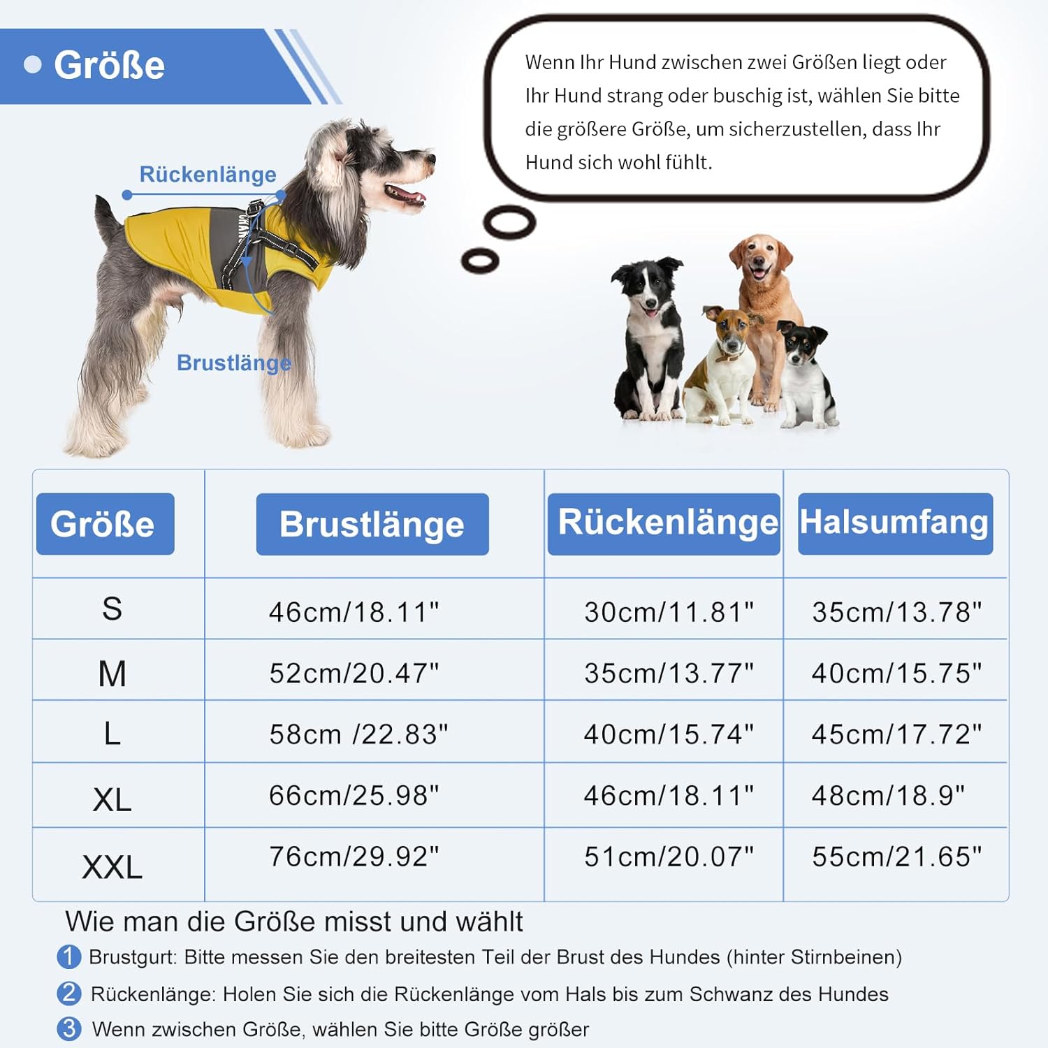 2. Дължина на гърба: Измерете дължината на гърба на животното от основата на врата до основата на опашката (без опашката).