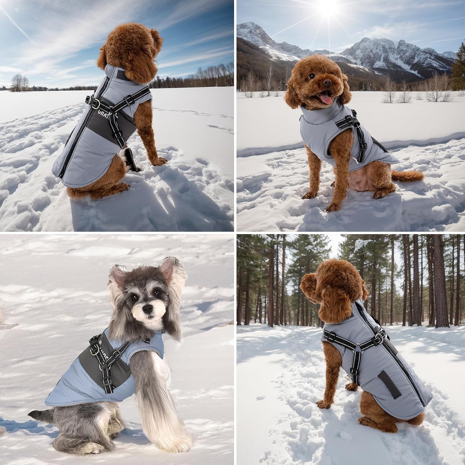 Това кучешко палто с хамут е изработено от полиестер и подплата от полар, външният слой е водоустойчив и ветроустойчив, а вътрешният слой е топъл и мек, поддържа кучетата ви топли и сухи в студено време и зима. Дори в сняг или дъжд, кучетата ви могат да излизат навън.