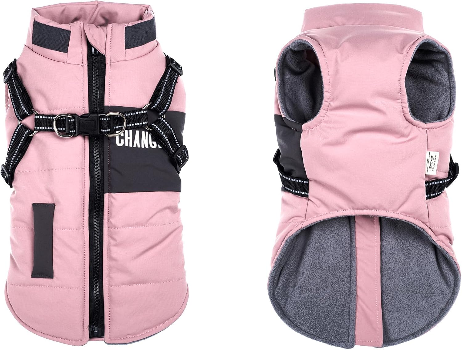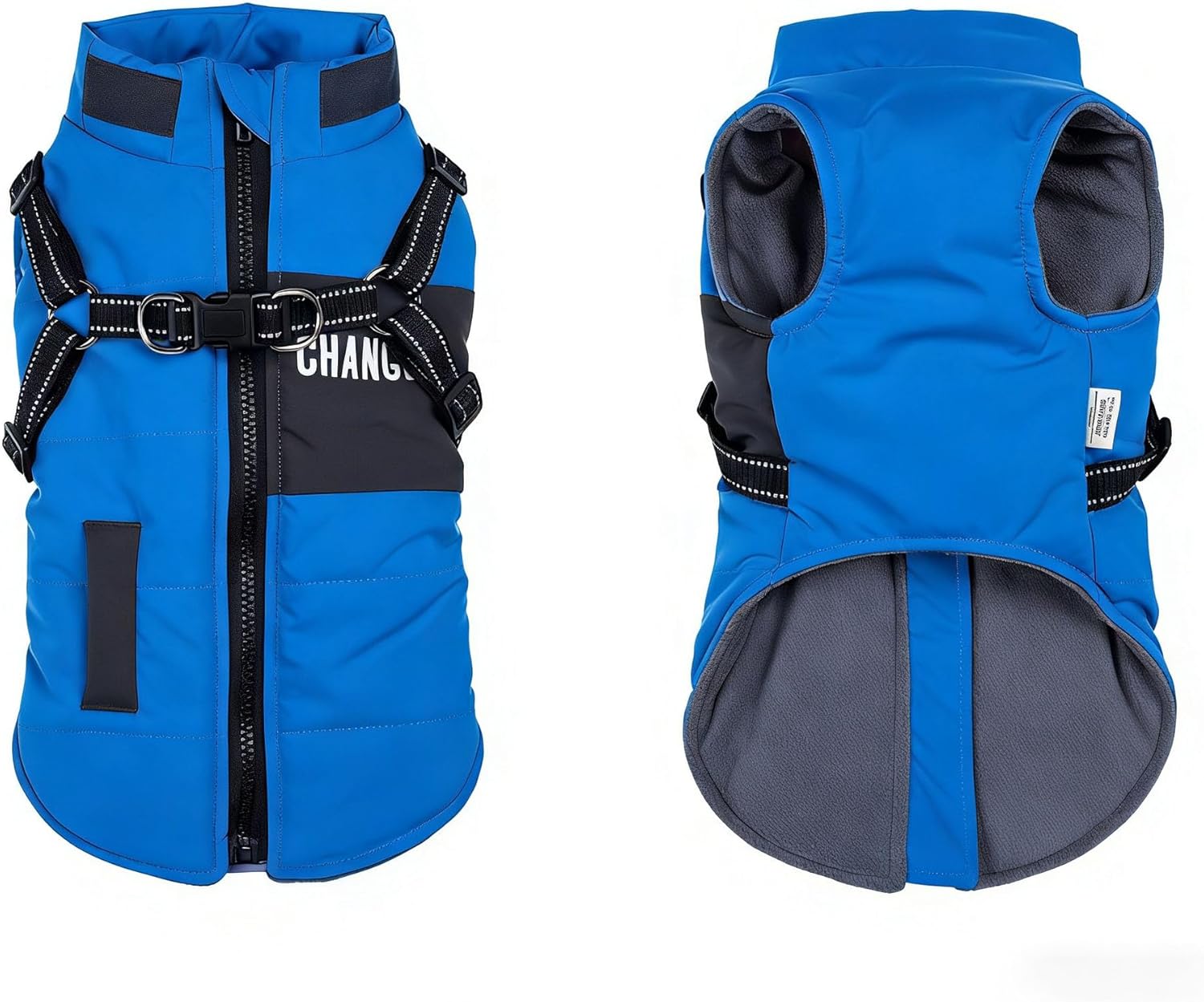 Палто за кучета с дизайн на нагръдник, не е необходим допълнителен жилетка за кучета, по-практично е за зимата навън с вашите кучета. Нагръдникът е вграден в палтата за кучета, което е по-удобно от нагръдника за кучета. С това зимно палто 2 в 1 за кучета можете да извеждате кучетата си навън по всяко време.