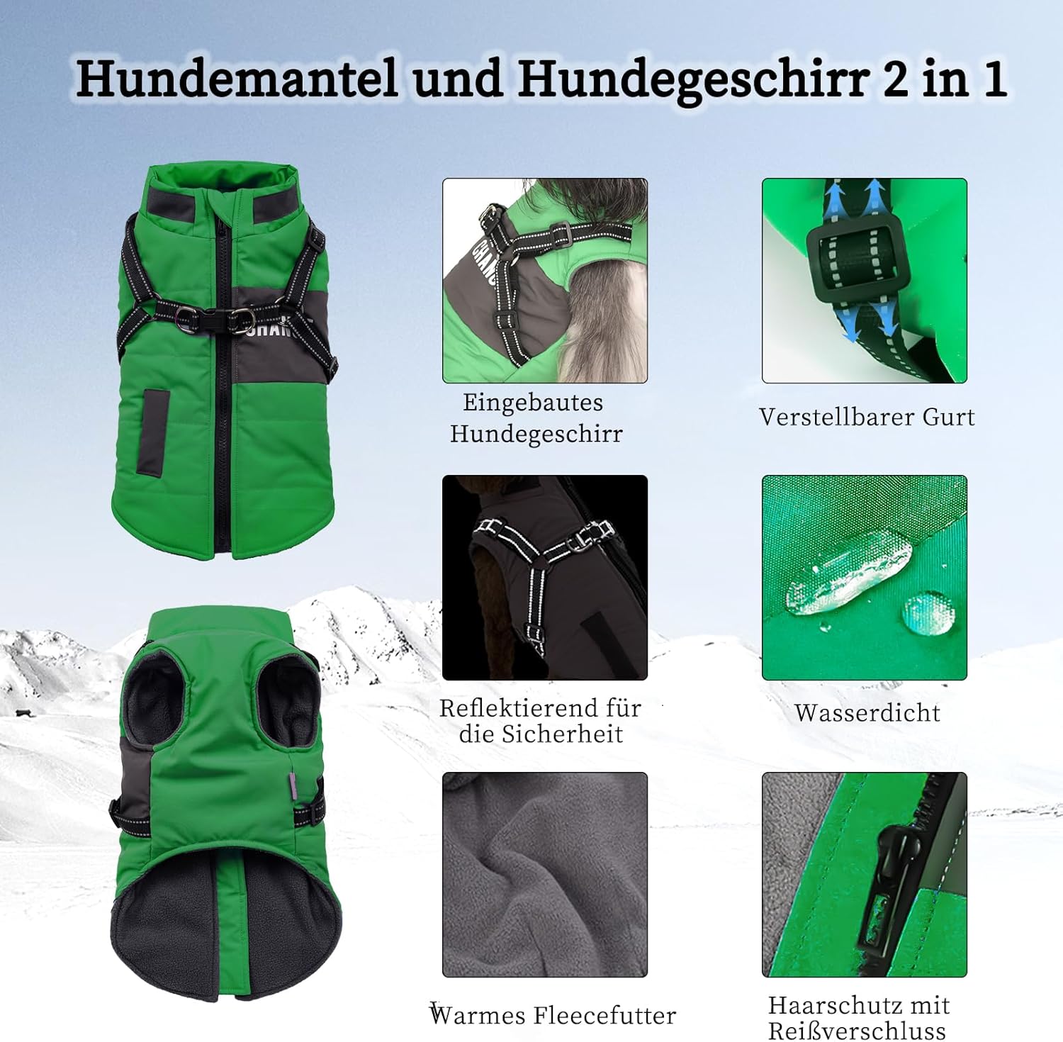 Това кучешко палто с хамут е изработено от полиестер и подплата от полар, външният слой е водоустойчив и ветроустойчив, а вътрешният слой е топъл и мек, поддържа кучетата ви топли и сухи в студено време и зима. Дори в сняг или дъжд, кучетата ви могат да излизат навън.