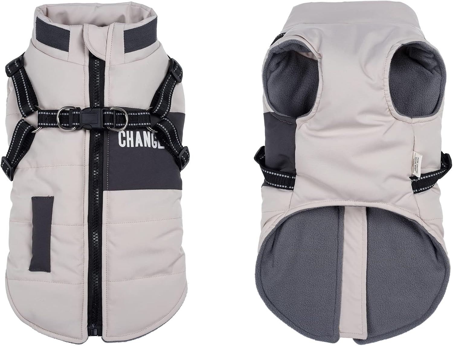 Това кучешко палто с хамут е изработено от полиестер и подплата от полар, външният слой е водоустойчив и ветроустойчив, а вътрешният слой е топъл и мек, поддържа кучетата ви топли и сухи в студено време и зима. Дори в сняг или дъжд, кучетата ви могат да излизат навън.