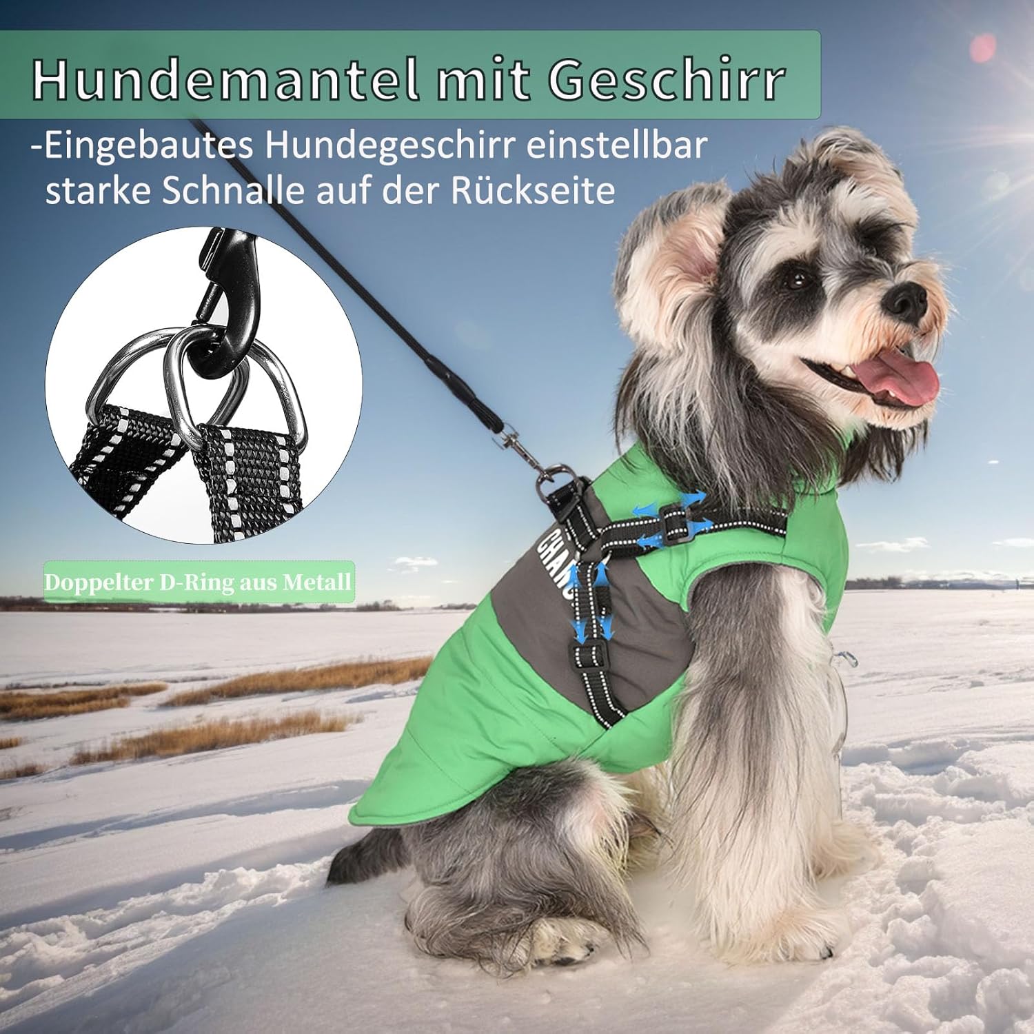 Палто за кучета с дизайн на нагръдник, не е необходим допълнителен жилетка за кучета, по-практично е за зимата навън с вашите кучета. Нагръдникът е вграден в палтата за кучета, което е по-удобно от нагръдника за кучета. С това зимно палто 2 в 1 за кучета можете да извеждате кучетата си навън по всяко време.