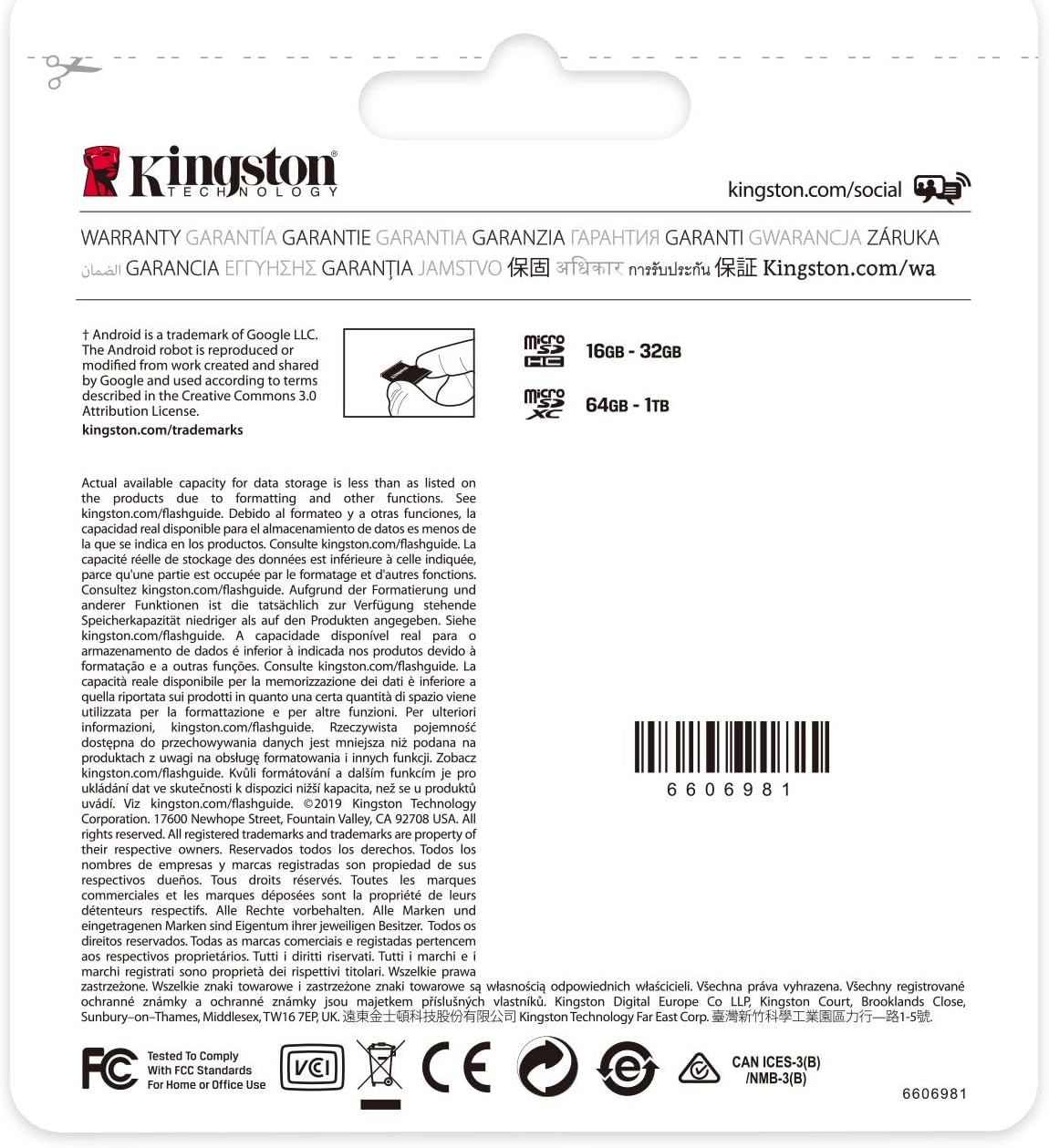 MicroSD картата Kingston Canvas Select Plus е съвместима с Android устройства и се отличава с производителност от клас A1. Тя предлага повишена скорост и капацитет за по-бързо зареждане на приложения и за заснемане на снимки и видеоклипове с капацитет до 512GB¹. Мощната, бърза и издръжлива microSD карта Canvas Select Plus е проектирана за надеждно заснемане и проявяване на снимки с висока резолюция, както и за заснемане и редактиране на Full HD видеоклипове. Картите Kingston Canvas са тествани за издръжливост в най-суровите среди и при най-тежки условия, гарантирайки, че вашите снимки, видеоклипове и файлове са защитени, където и да отидете. Подкрепена от доживотна гаранция.