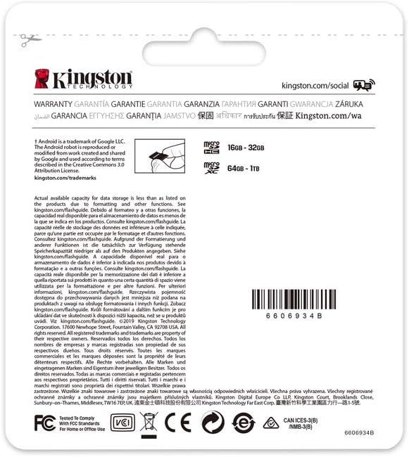 MicroSD картата Kingston Canvas Select Plus е съвместима с Android устройства и се отличава с производителност от клас A1. Тя предлага повишена скорост и капацитет за по-бързо зареждане на приложения и за заснемане на снимки и видеоклипове с капацитет до 512GB¹. Мощната, бърза и издръжлива microSD карта Canvas Select Plus е проектирана за надеждно заснемане и проявяване на снимки с висока резолюция, както и за заснемане и редактиране на Full HD видеоклипове. Картите Kingston Canvas са тествани за издръжливост в най-суровите среди и при най-тежки условия, гарантирайки, че вашите снимки, видеоклипове и файлове са защитени, където и да отидете. Подкрепена от доживотна гаранция.