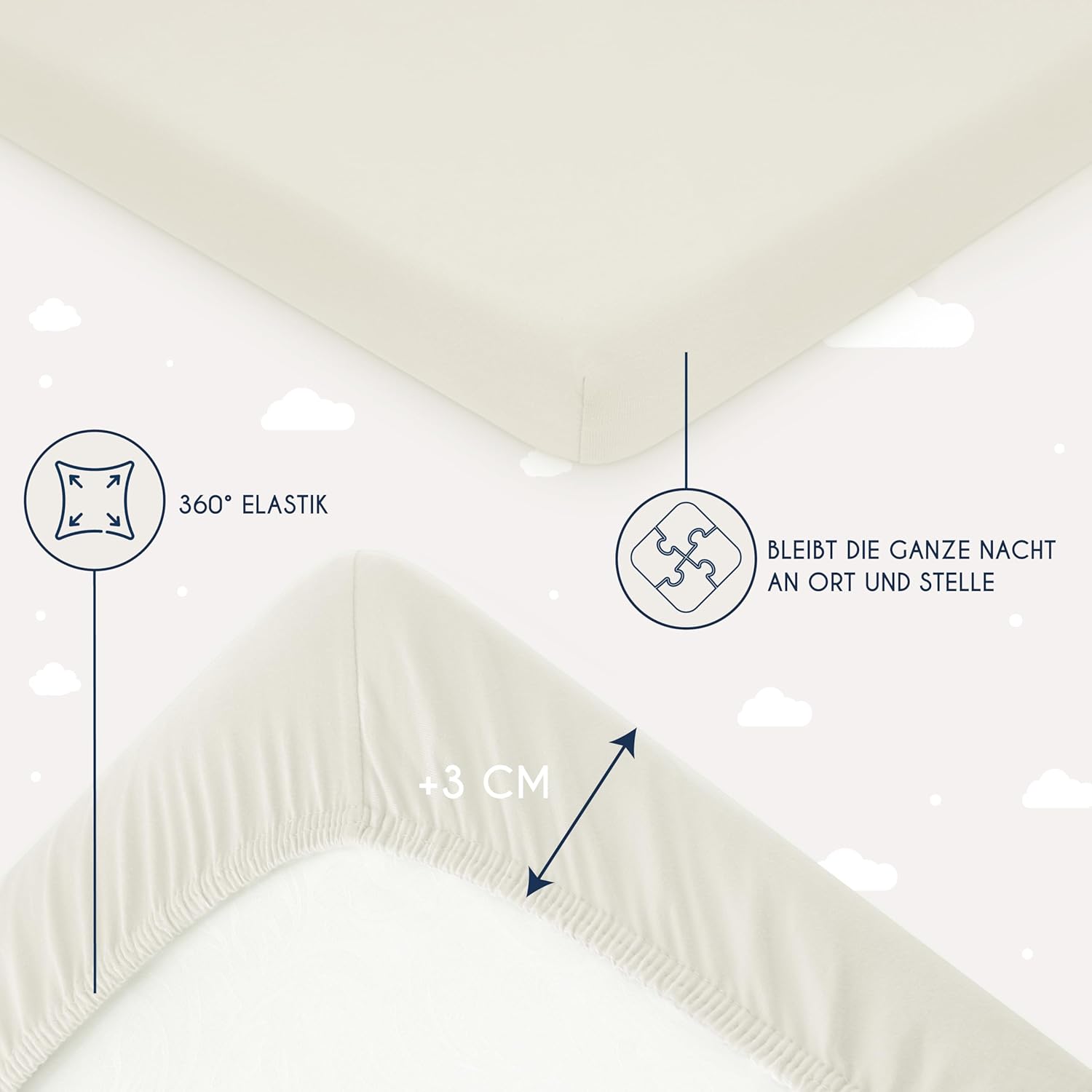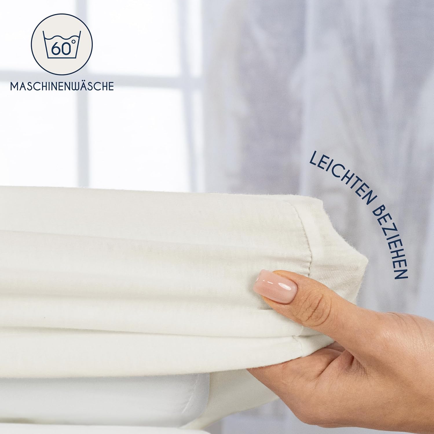 • Подправете матрака си – проектирайте спалното си бельо с този чаршаф от джърси памук за възрастни в бежово (100% джърси памук и 130 г/м²), лек, дишащ и много издръжлив материал: ще ви хареса да се пъхнете под одеялото. 200 x 200 см се отнася за размера на матрака, размерите на чаршафа може да варират с няколко сантиметра, за да паснат по-добре на възглавницата.
