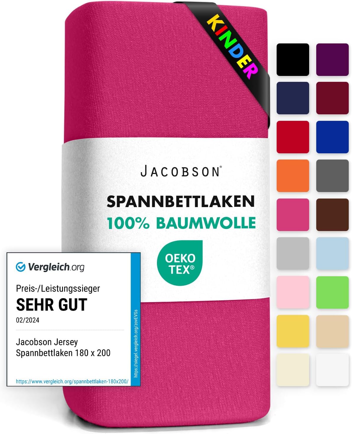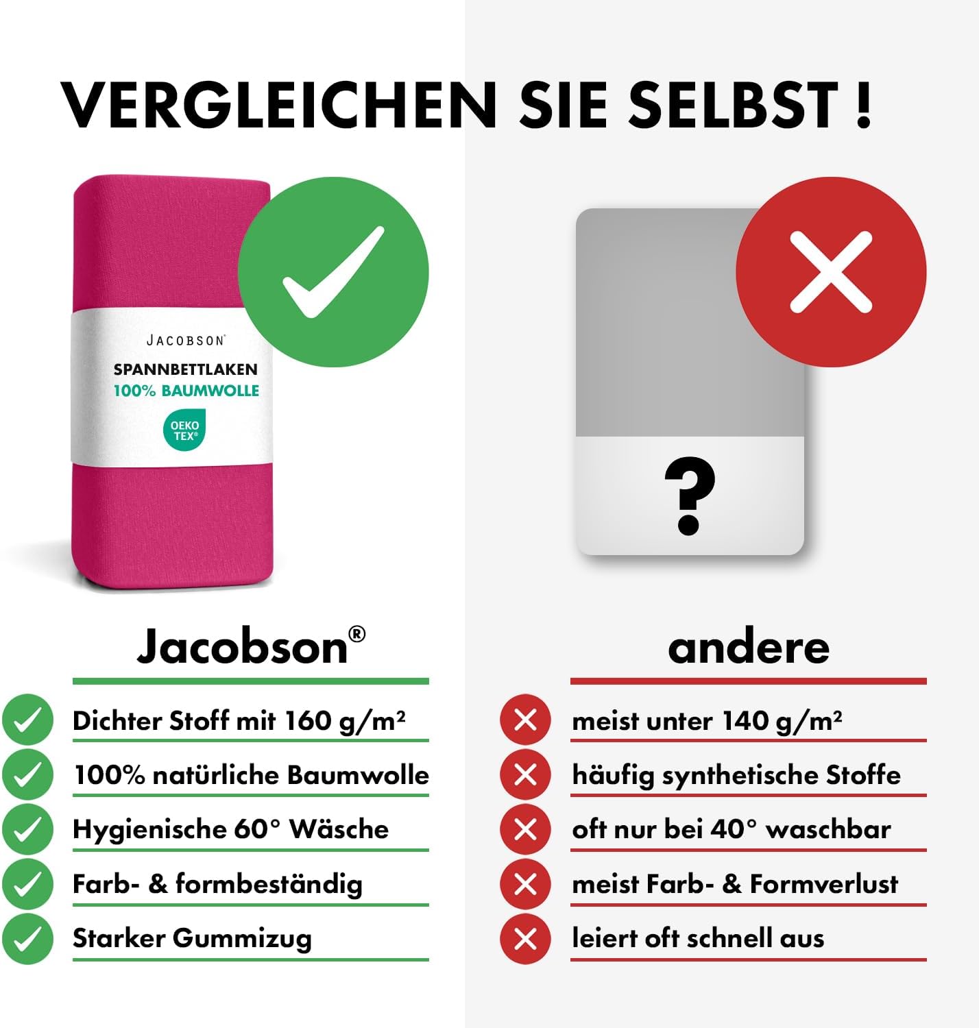 • Чаршаф с пълнеж Jacobson Basic: марката Jacobson е символ на най-високите стандарти за качество, усещане и естетика. Чаршафите с пълнеж с размер 180 x 200 см - 200 x 200 см са подходящи за матраци с височина на основата до 23 см.