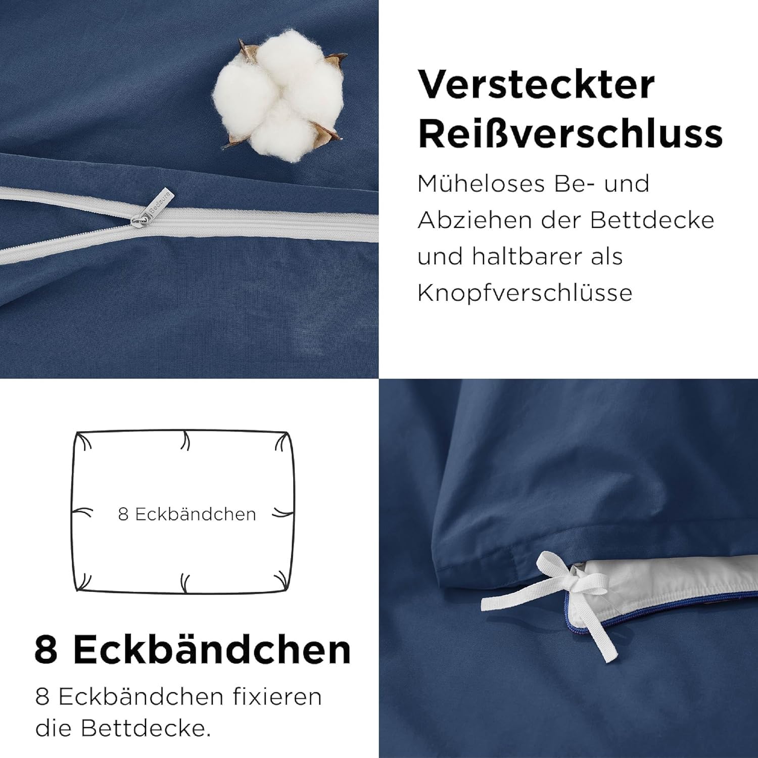 Памучно спално бельо Bedsure 200 x 200 см, Сини комплекти спално бельо, Плик за завивка 200 x 200, Комплект от 3 части с 2 калъфки за възглавници 80 x 80 см, Oeko-Tex спално бельо с цип