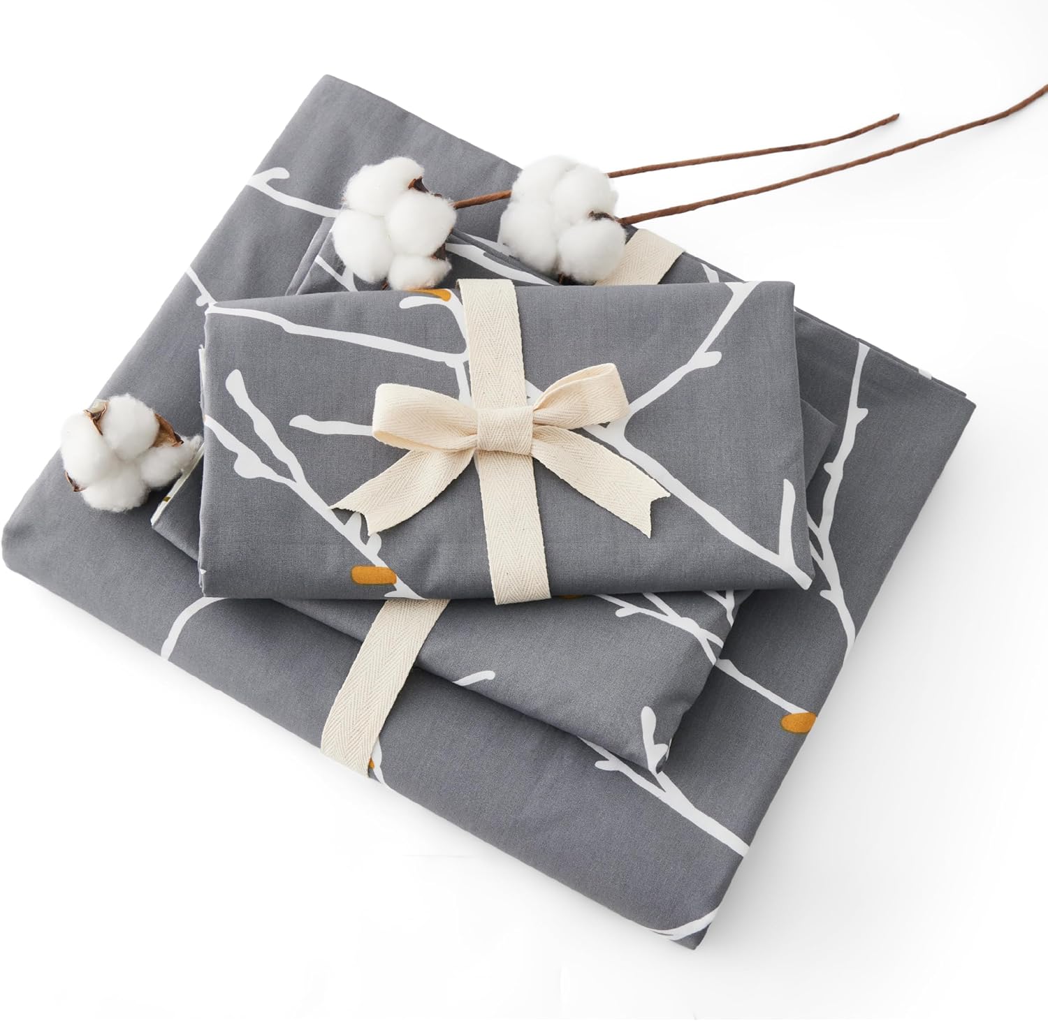 Bedsure Reversible Cotton Duvet Cover Set is lush and flowing with charming orange plum blossom on grey/ivory duvet cover. Made from fine, soft cotton fabric in inviting and soothing tones, this reversible branch bedding set will add a lively and delicate flair to your bedroom. Bring a breath of fresh air to your bed with our beautiful bed linen.