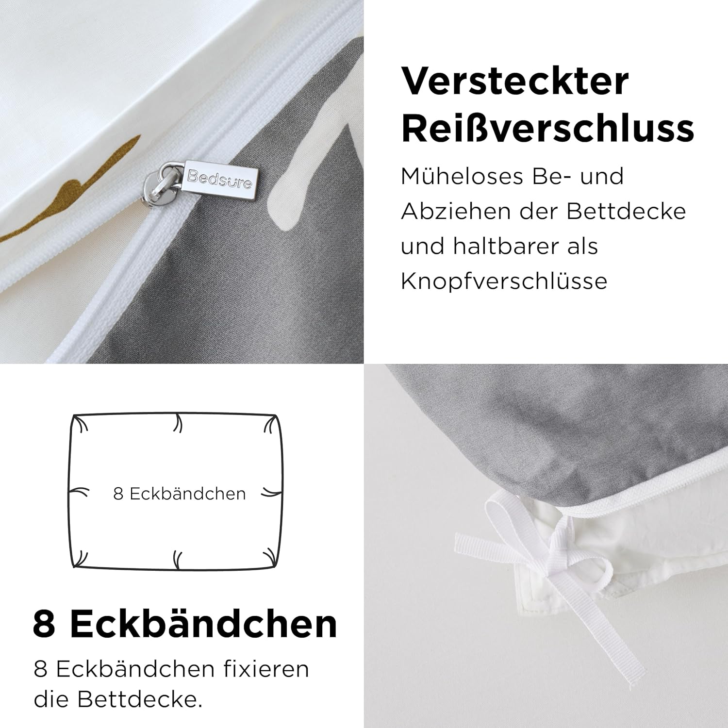 Плик за завивка Bedsure Cotton Grey/Ivory с бляскав мотив на клони ви предлага изключителна мекота и комфорт. Хипоалергенният памучен комплект спално бельо е подходящ за страдащи от алергии и предпазва завивката ви от замърсявания, петна и прах. В същото време, сваляемият калъф за завивка е много по-лесен за почистване от самата завивка. Двустранните контрастни цветове на калъфа за завивка, изработен от 100% памук, осигуряват изключителни тонове и комфорт, които ще ви осигурят спокоен и щастлив сън.