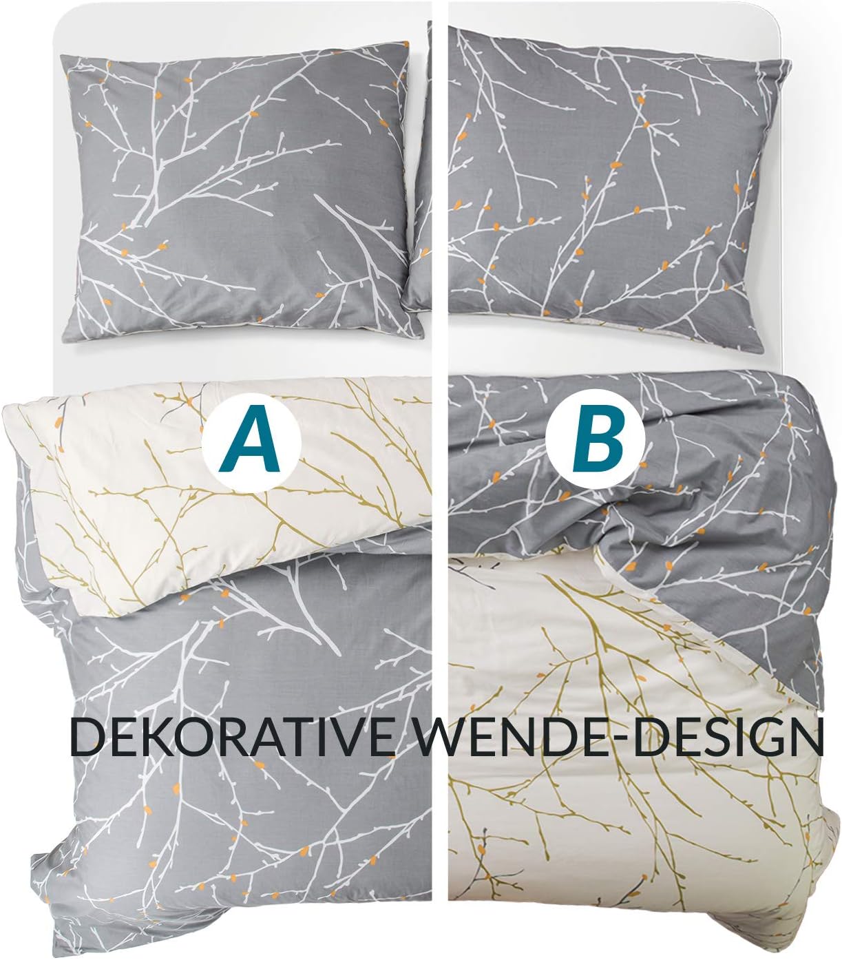 Bedsure Reversible Cotton Duvet Cover Set is lush and flowing with charming orange plum blossom on grey/ivory duvet cover. Made from fine, soft cotton fabric in inviting and soothing tones, this reversible branch bedding set will add a lively and delicate flair to your bedroom. Bring a breath of fresh air to your bed with our beautiful bed linen.