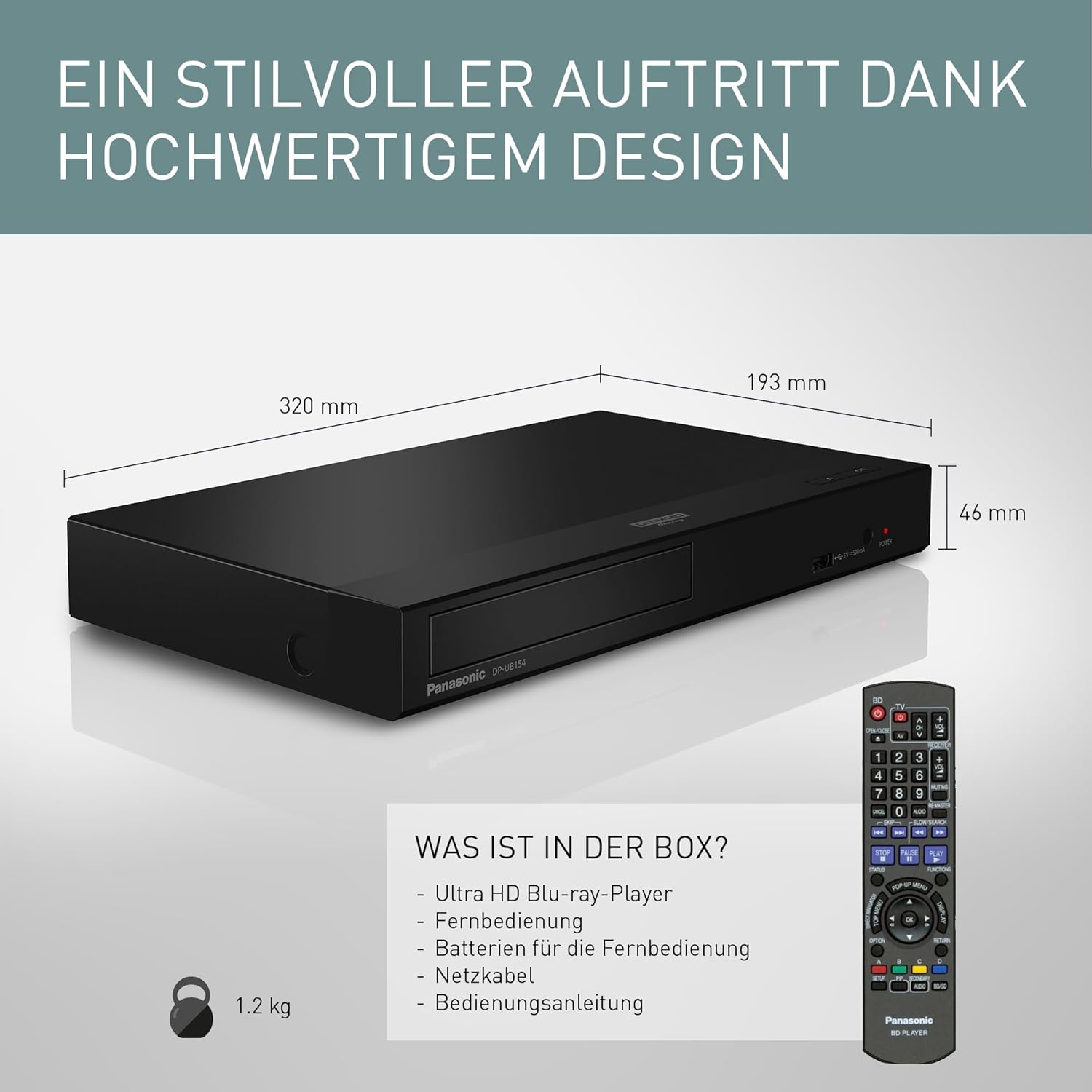Panasonic DP-UB154EG-K Ultra HD Blu-ray плейър в черно (HDR10+, 4K Blu-ray диск, 4K VoD, Dolby Atmos, HDMI, USB)