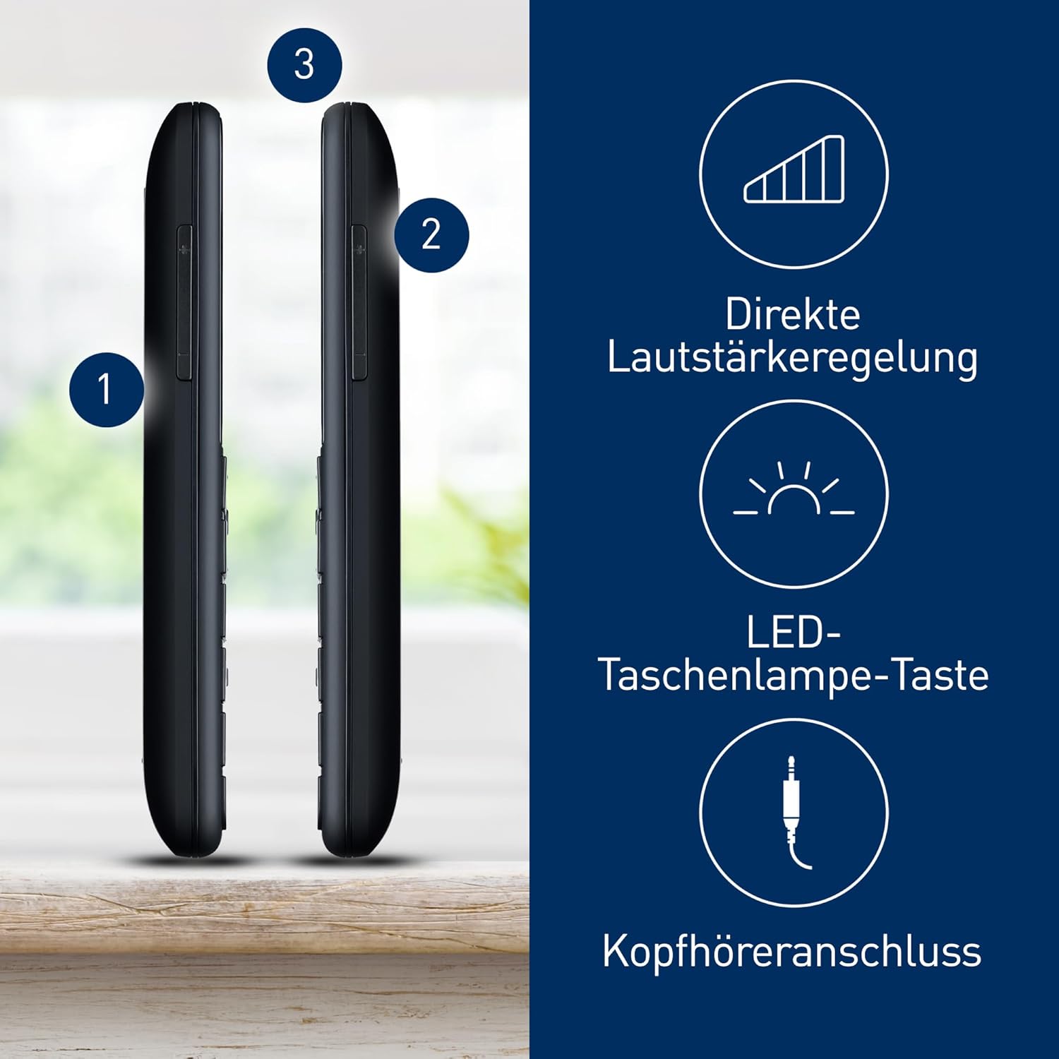 The LED light integrated into the top of the Easy Use mobile phone KX-TU155 is particularly practical. As a compact torch, it is always at hand - whether you're coming home in the evening or looking for your glasses in the dark.