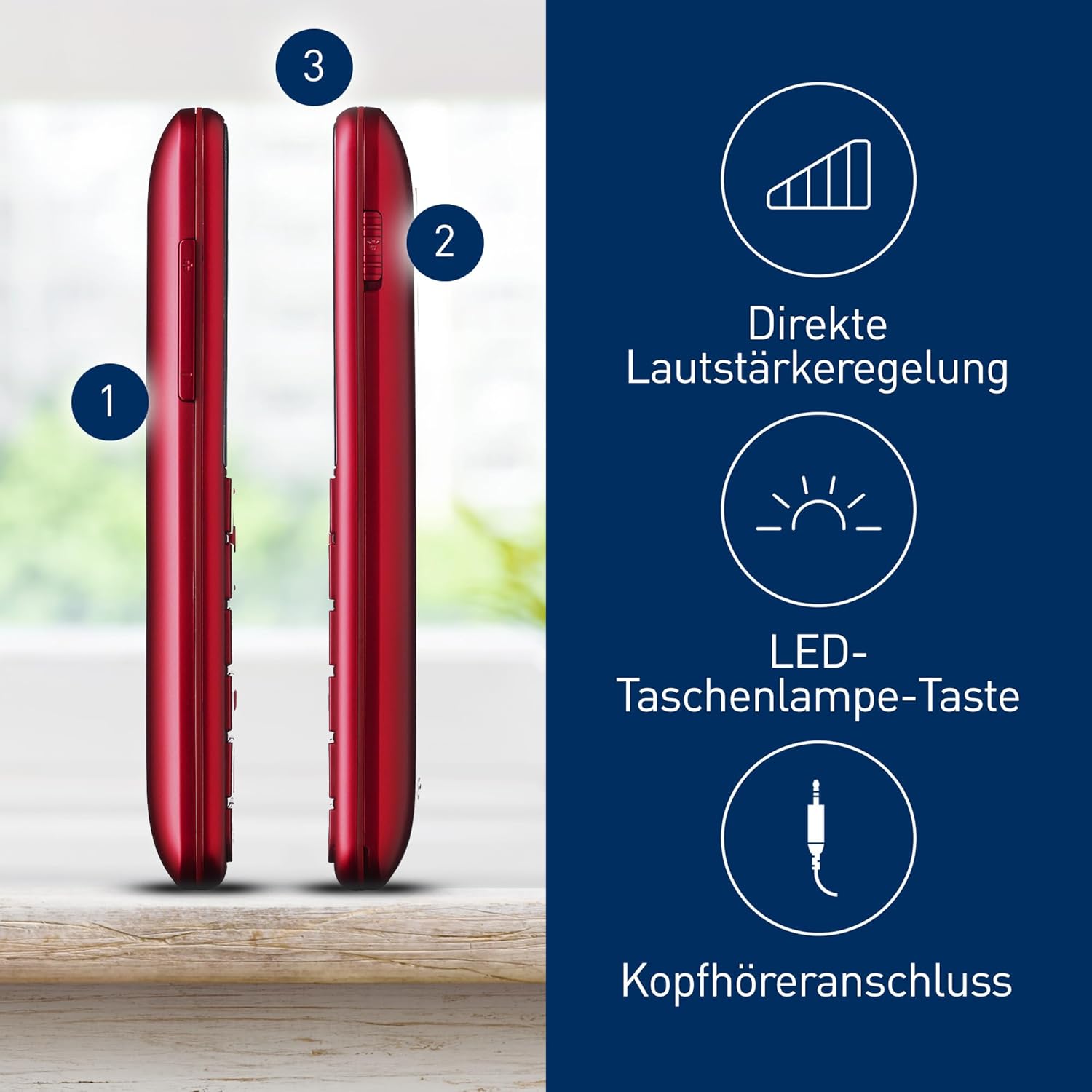The volume of the Easy Use KX-TU155 mobile phone can be easily adjusted via a control on the top of the device. Thus, the conversation volume can be individually adjusted for an optimal listening experience.