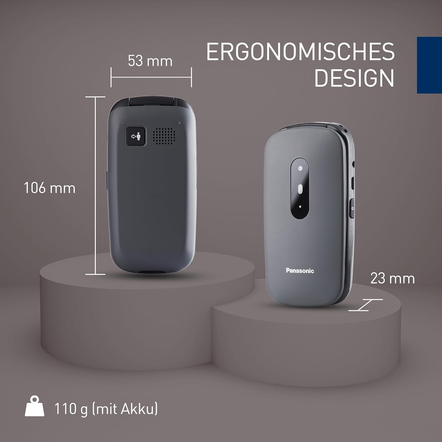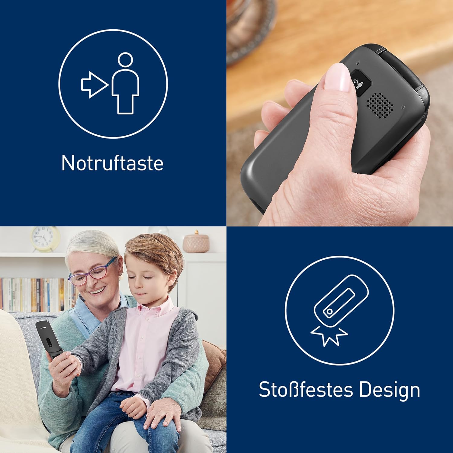 Panasonic KX-TU446EXG 2G мобилен телефон за възрастни хора без договор (SOS бутон за спешно повикване, удароустойчив, усилвател на глас, големи отделни бутони, дисплей с голям шрифт и цифри, 2.4-инчов цветен дисплей