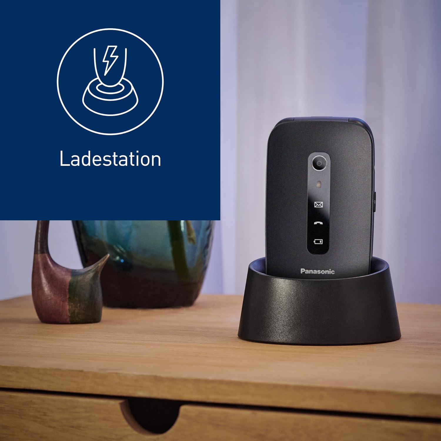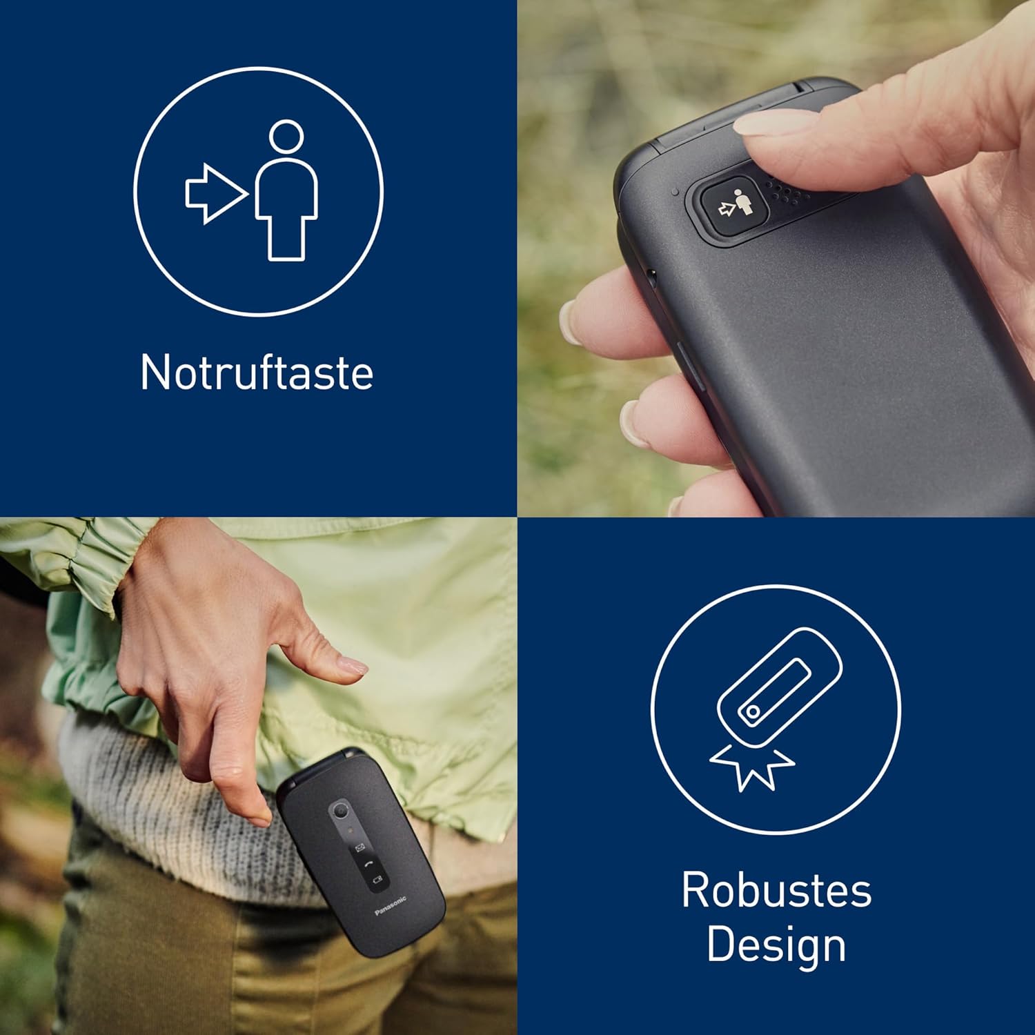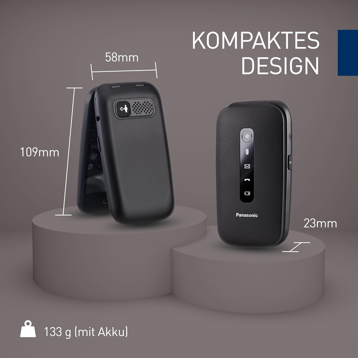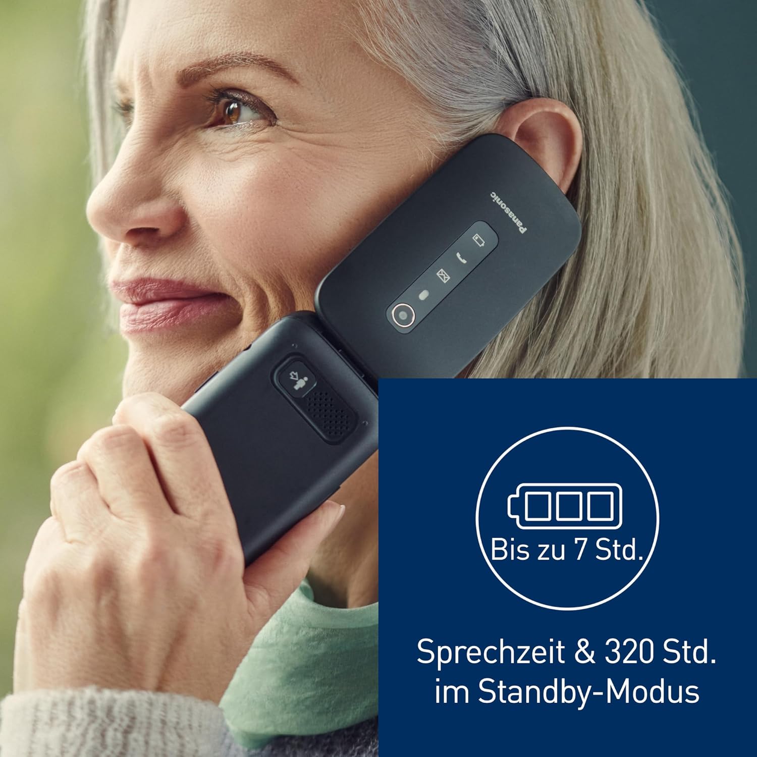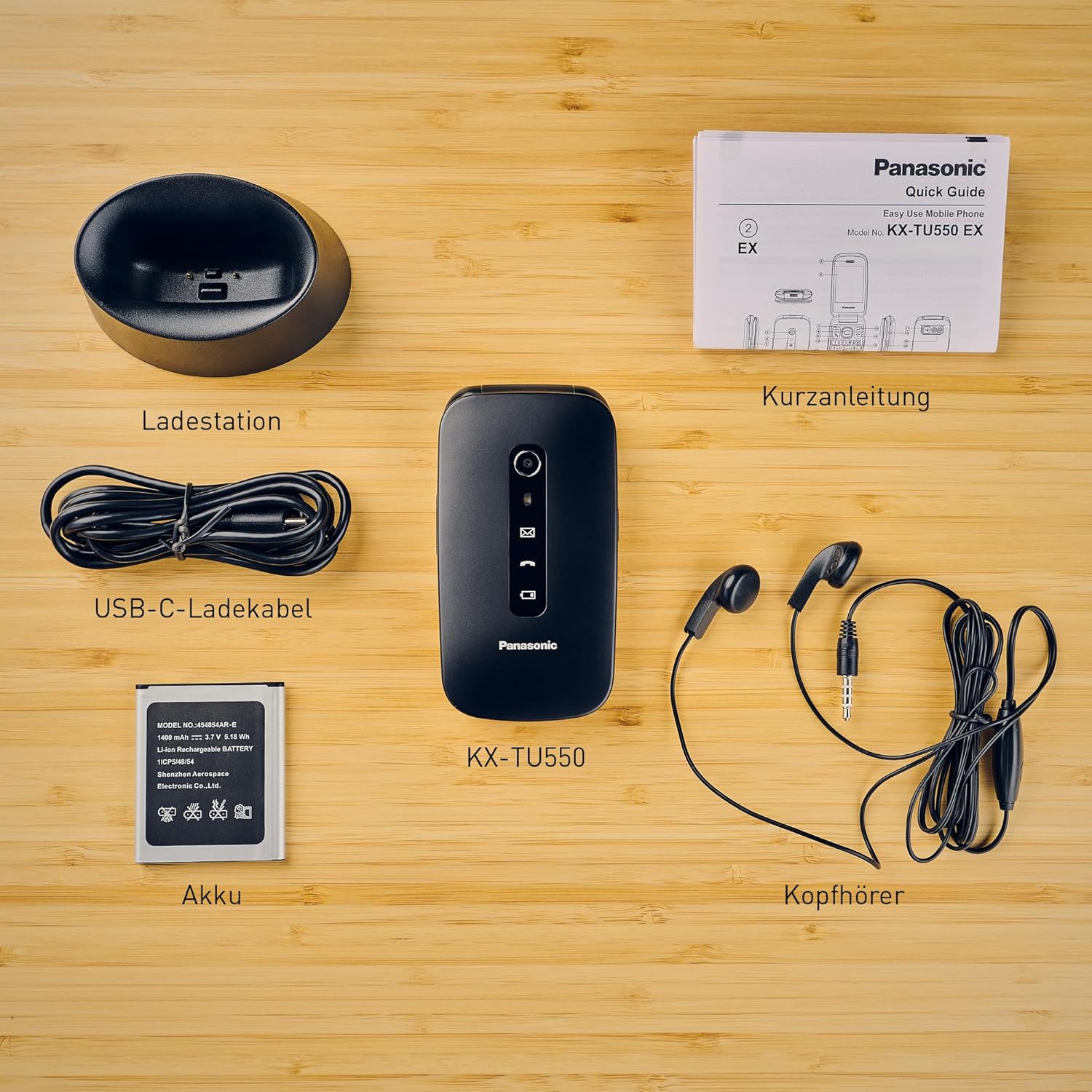 Panasonic KX-TU550EXB 4G Essentials мобилен телефон с разтегателен корпус за възрастни хора, 1.2MP камера, телефон за възрастни хора с голям 2.8-инчов дисплей, 300 часа време на готовност, черен