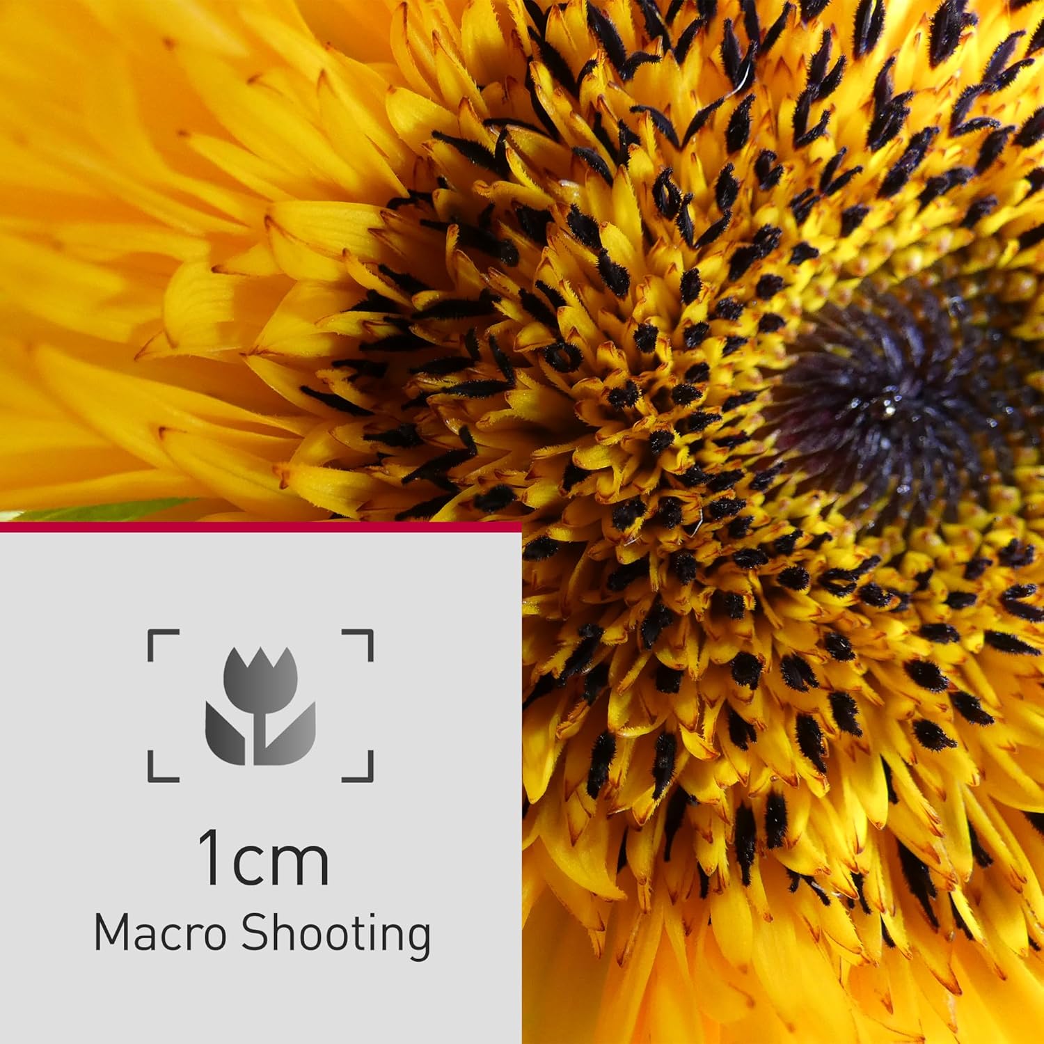 • Универсален вариообектив: ненадмината гъвкавост с вградения обектив 20-1200 мм (KB) F2.8-5.9, включително динамично 60x увеличение и 1 см макро, идеален за широки пейзажи и детайлни снимки отблизо.