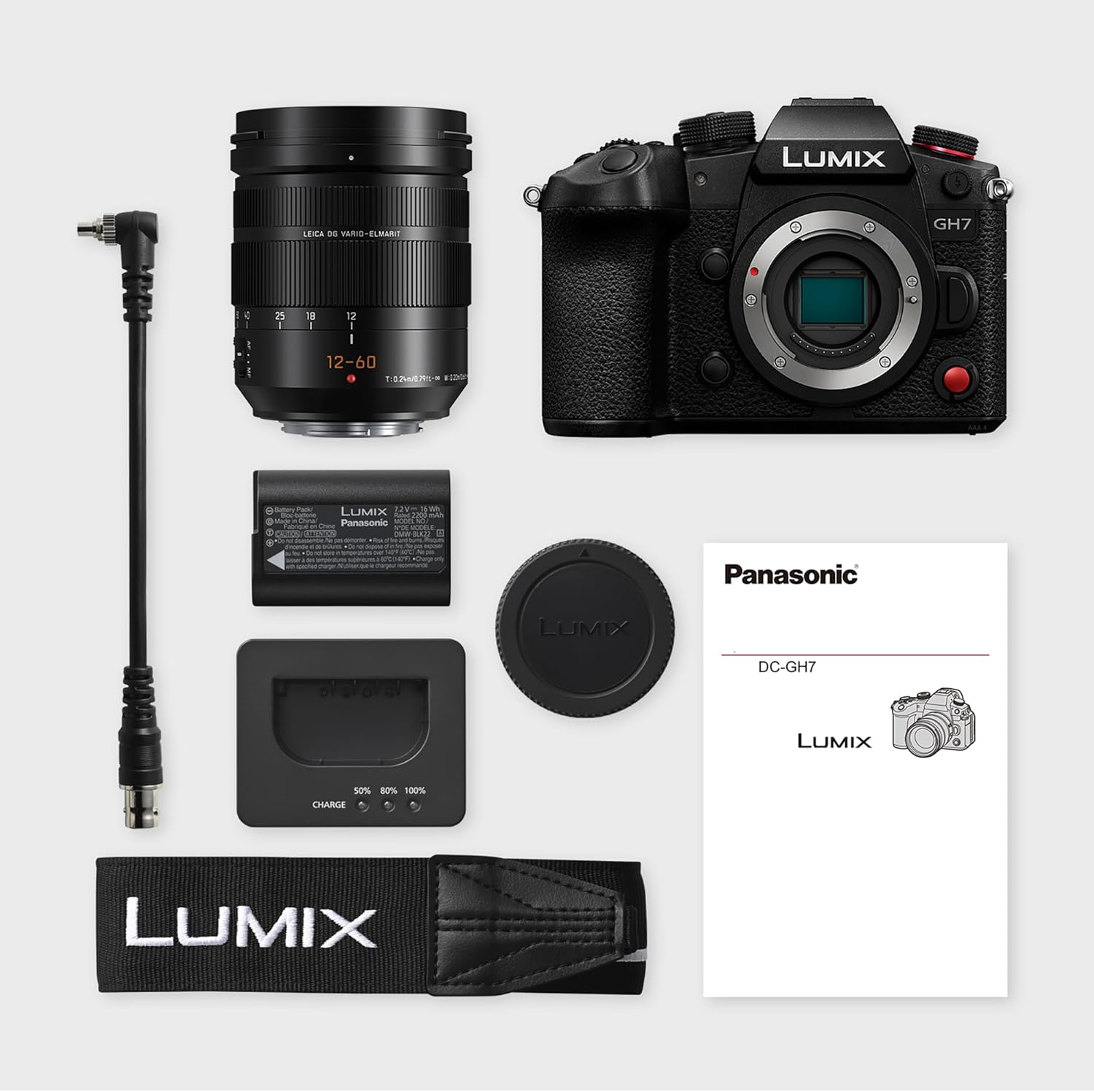 Panasonic Lumix DC-GH7LE 25.2MP Open Gate, C4K/4K 4:2:2 60/50p видео, фазов хибриден автофокус, активен визьор, LUT, 32-битов плаващ звук, OLED визьор, въртящ се монитор, с обектив Leica DG H-ES12060