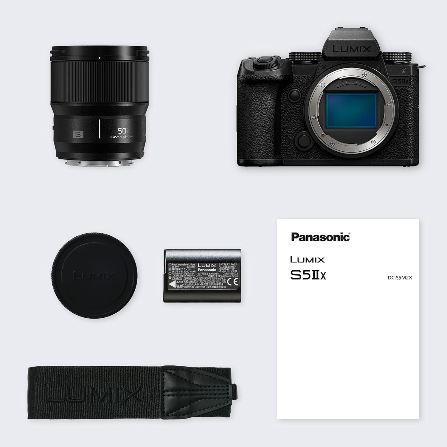 Panasonic LUMIX DC-S5M2XCE Безогледален пълноформатен фотоапарат с обектив S 50 mm F1.8, 4K 60p и 6K 30p неограничен запис, обръщаем екран, WiFi, хибриден фазов автофокус, активен сензор, батерия DMW-BLK22, черен