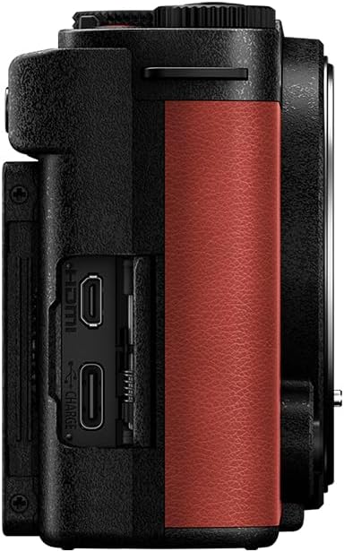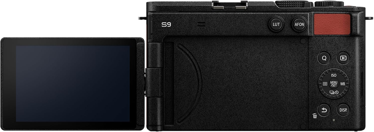 Panasonic Lumix DC-S9E-R безогледален пълноформатен фотоапарат, отворена врата за влогване 24.2 MP, 6K/4K, 779-точков PDAF, стабилизация на изображението, LUT, 180° гъвкав монитор, 5 GHz Wi-Fi, червен, тяло на фотоапарата