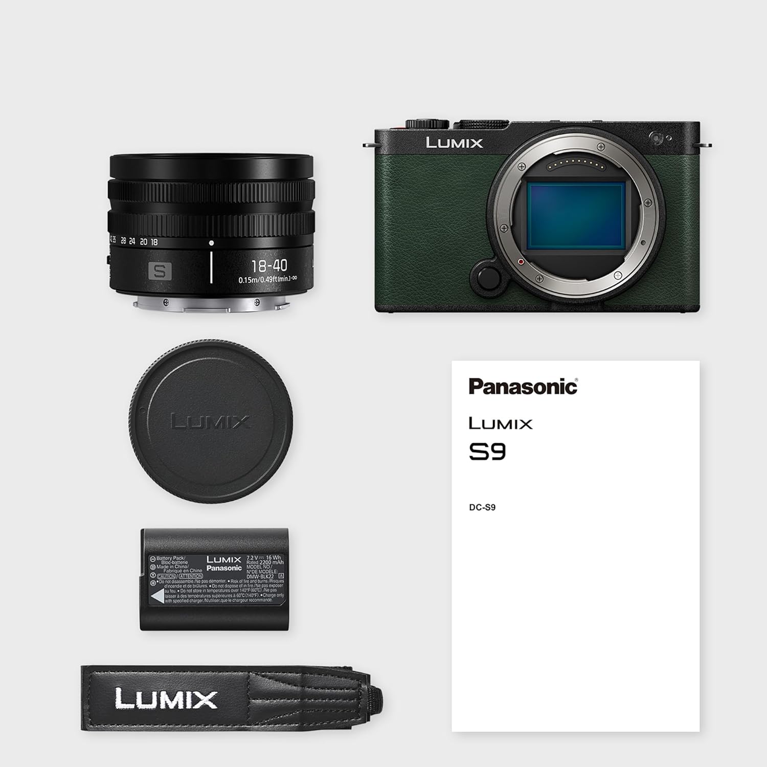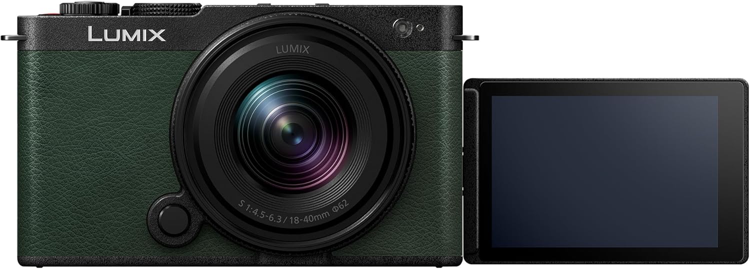 Panasonic Lumix DC-S9NE-G безогледален пълноформатен фотоапарат, отворена врата за влогване 24.2MP, 6K/4K, 779 точки PDAF, стабилизация на изображението, LUT, 180° гъвкав монитор, 5GHz Wi-Fi, зелен, с обектив S-R1840E