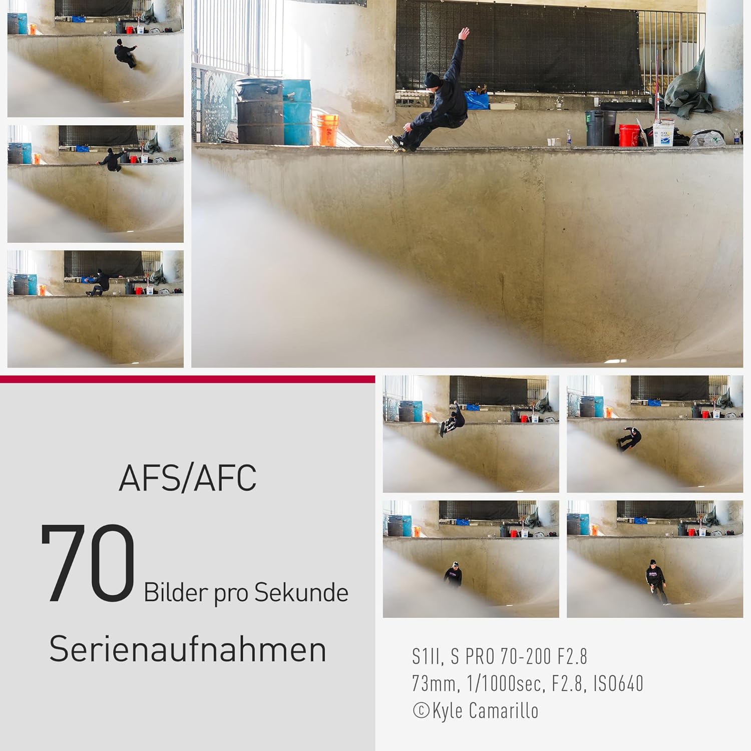 • Подобреният фазово-хибриден автофокус (779 точки за фазово откриване), вече с AI проследяване, бързо и точно разпознава човешки очи и лица и плавно проследява движенията на обекта. С високоскоростно непрекъснато снимане с около 70 кадъра в секунда и AF проследяване, динамичните обекти могат да бъдат заснети точно и без усилие. Режимът SH-pre burst дори започва запис, преди бутонът на затвора да е натиснат напълно, така че никога да не пропуснете нито един момент. Новодобавена функция за разпознаване на обекти в градски спортове.