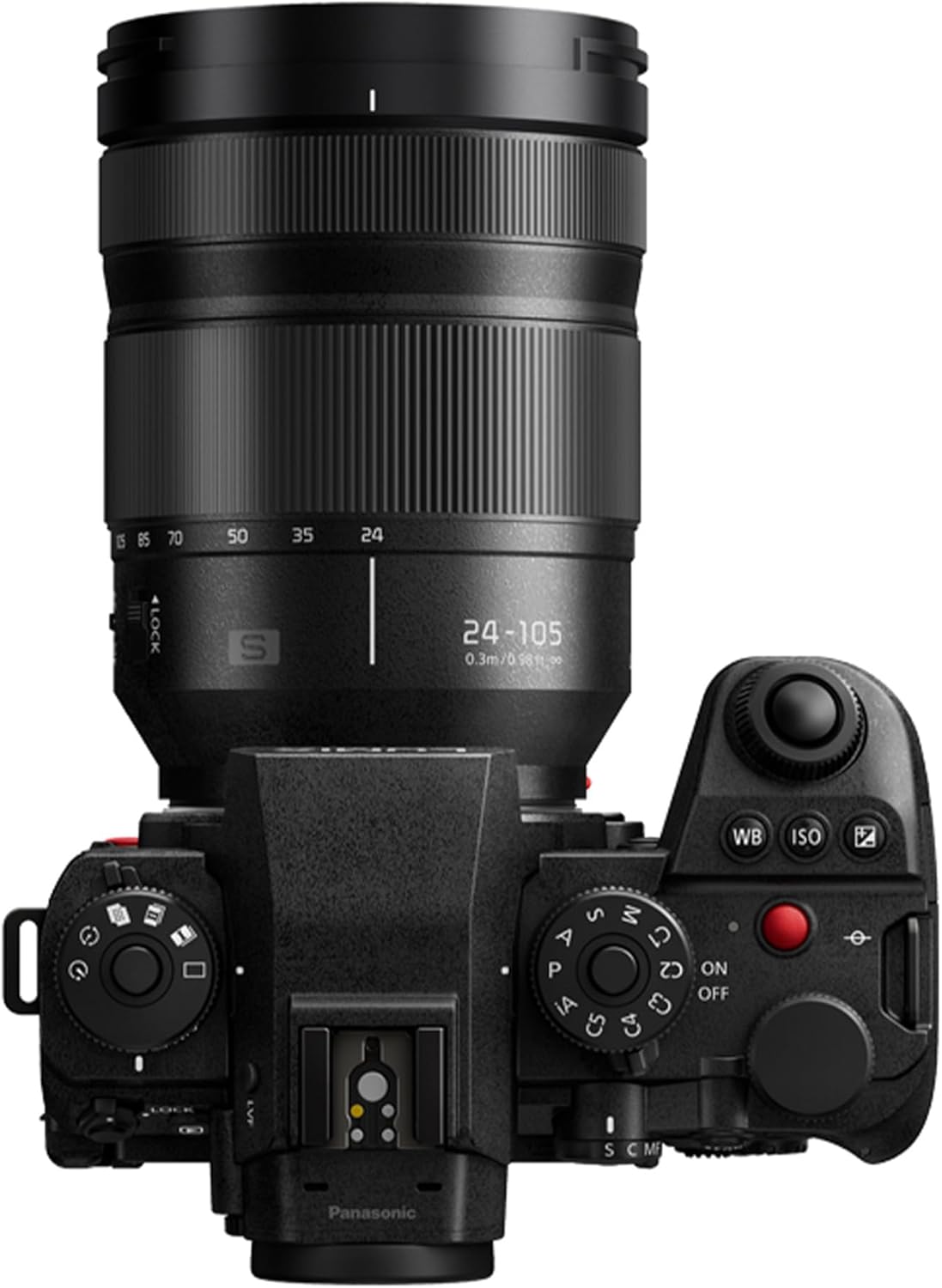 Panasonic LUMIX S1II пълноформатен фотоапарат, 4K 120p, 5.1K 60p видео с отворена камера, 24MP, активна стабилизация на изображението, 4:2:2 10-битов запис, L-байонет, DC-S1M2ME, обектив 24-105 мм F4